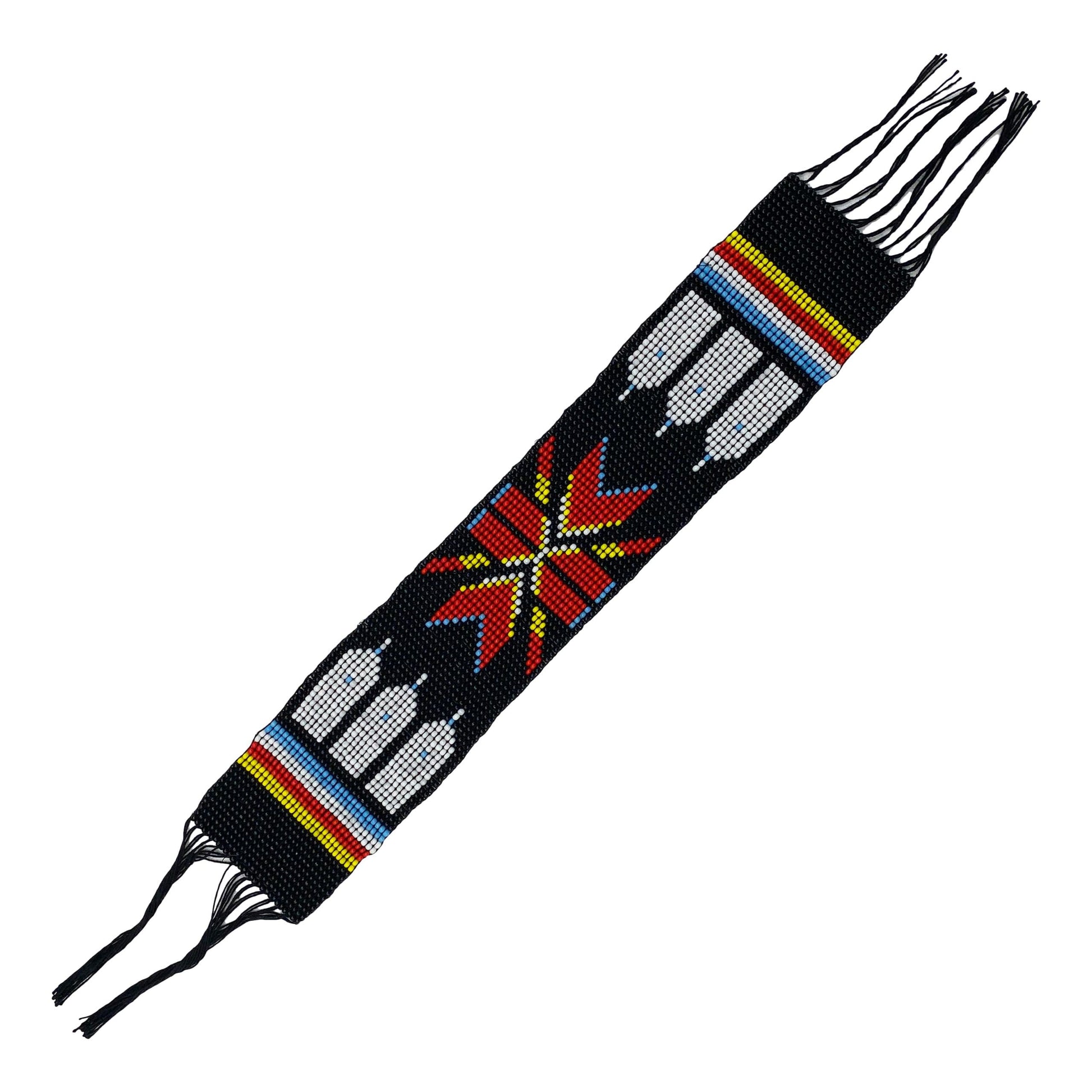 10X2" Black Red White Handmade Art Craft Applique Beaded Strip