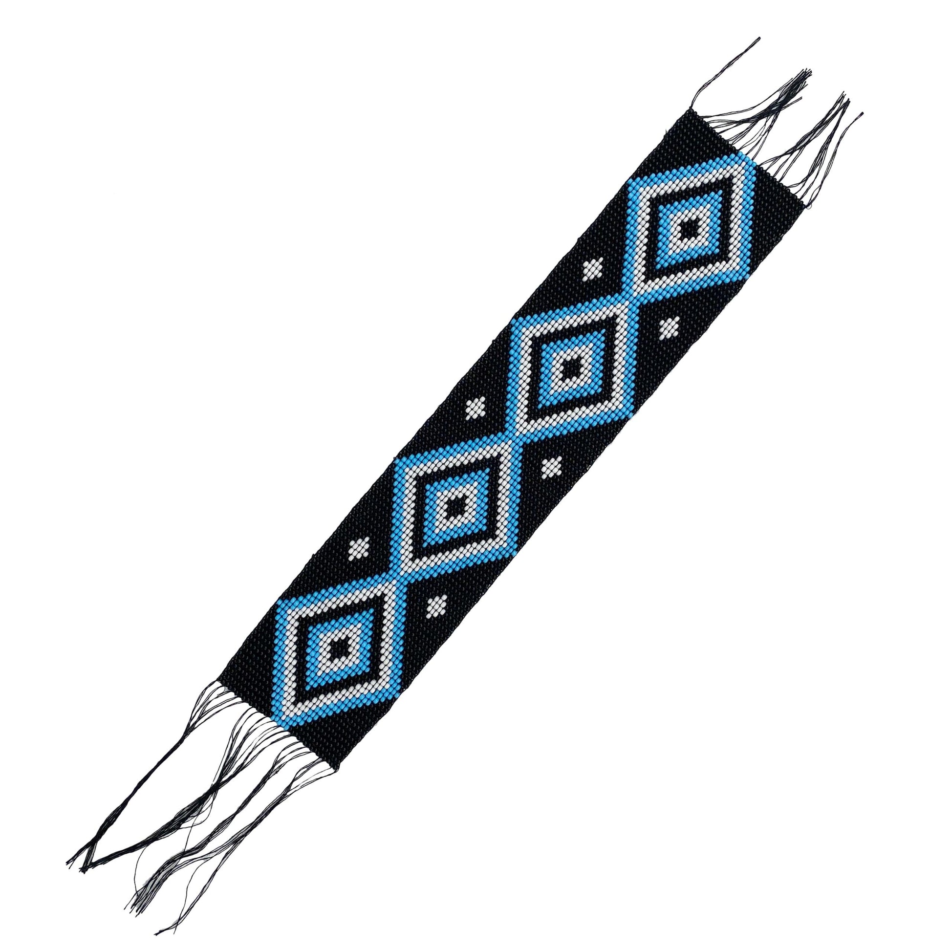 10X2" Black Turquoise Blue Handmade Art Craft Applique Beaded Strip