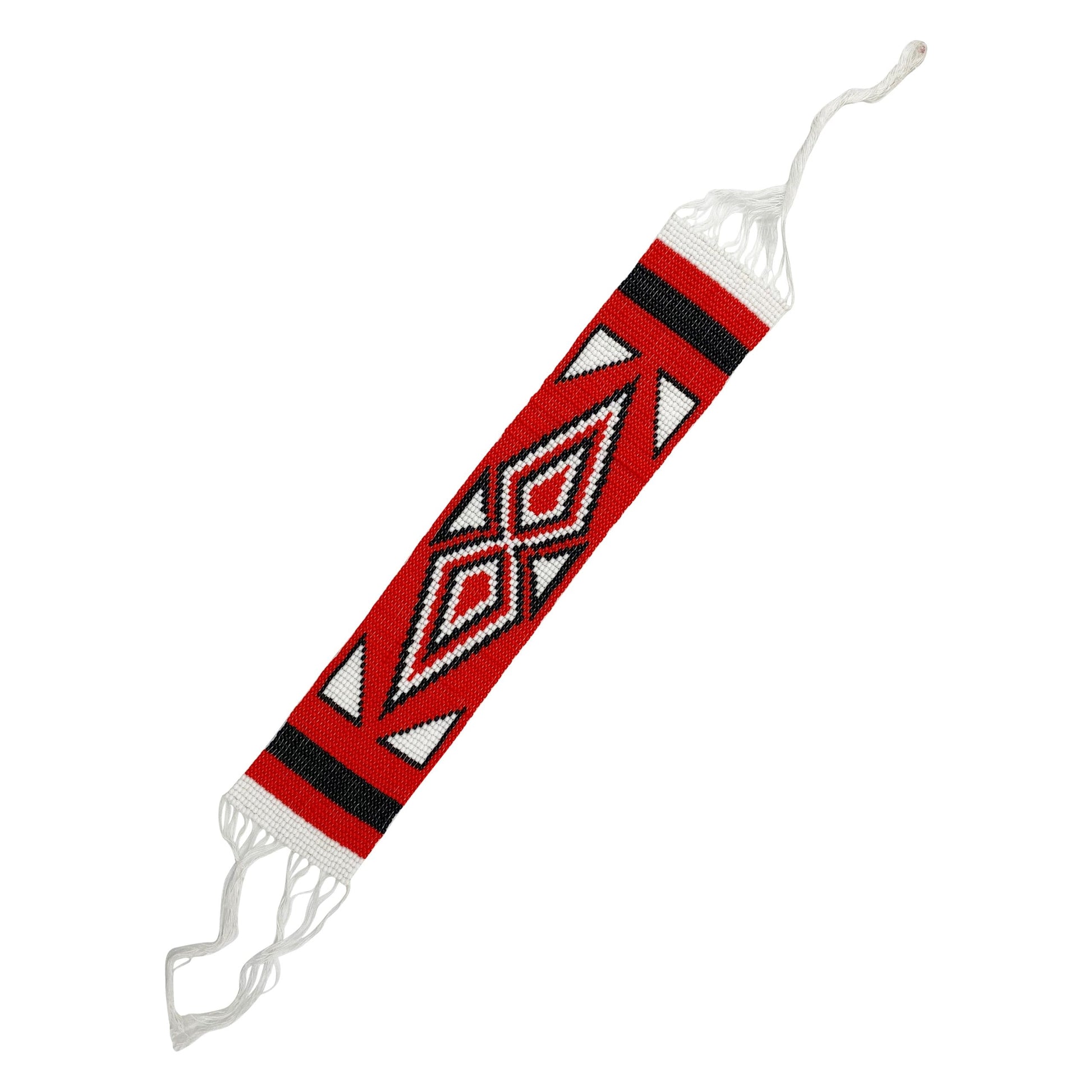 10X2" Red Black White Handmade Art & Craft Applique Beaded Strip