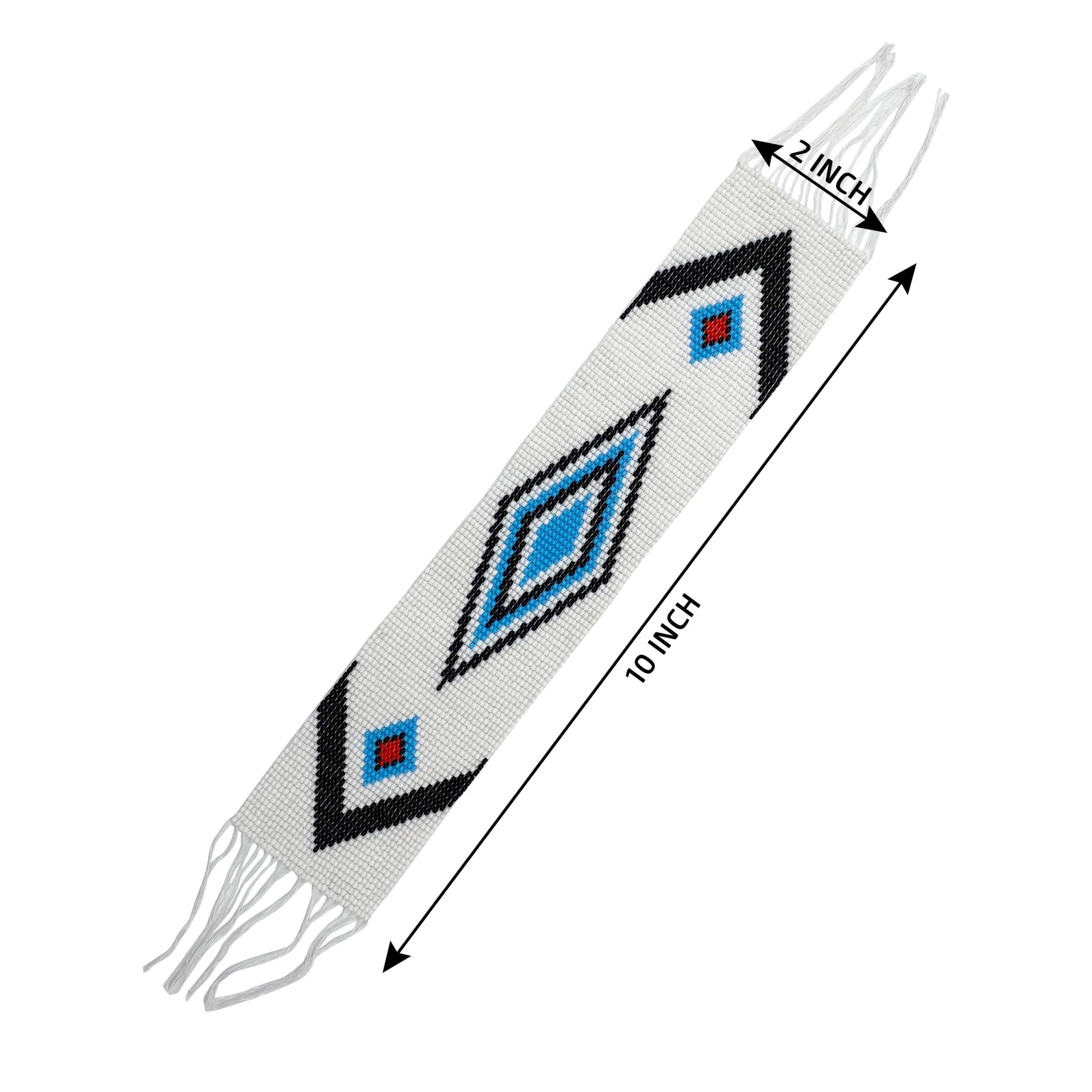 10X2" White Black Blue Medicine Man'S Eye Applique Beaded Strip