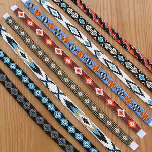 12X.5 Blue Black Geometric Handmade Beaded Strip