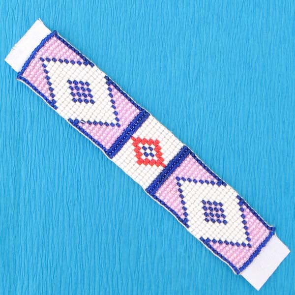 5X1" Pink White Blue Red Seed Beaded Applique Sew Iron Craft Strip