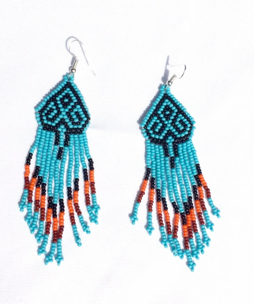 Beaded earrings handmade using small 11/0 czech seed beads.