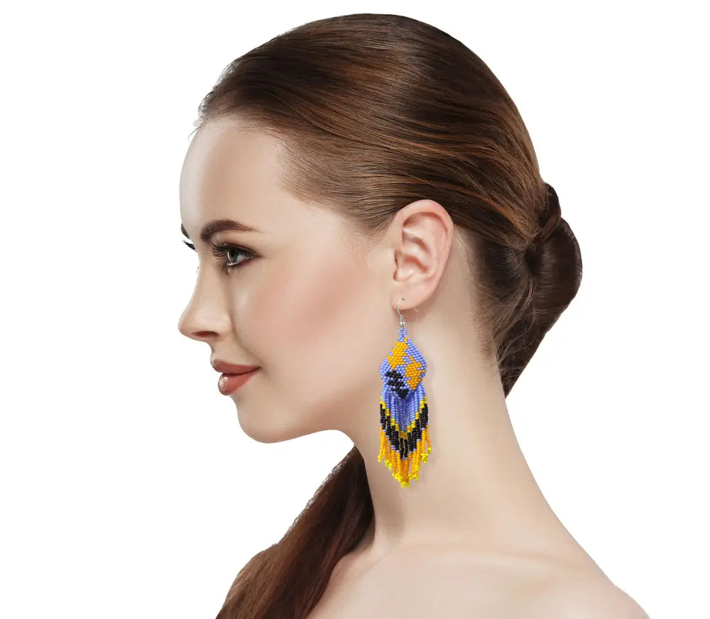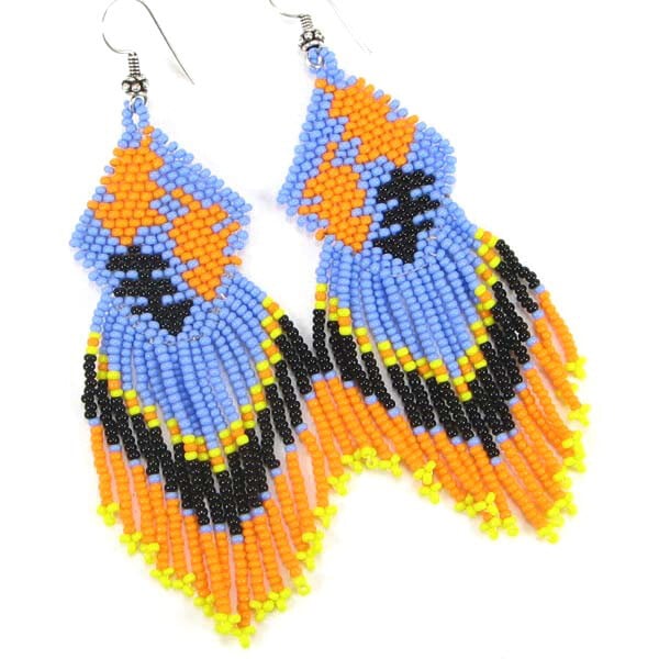 Purple Orange Black Seed Beaded Leaf Earrings