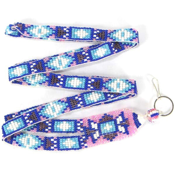 Blue Pink White Brown Seed Beaded Lanyard Id Holder