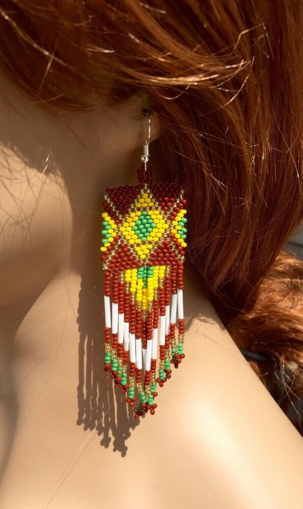 Beaded earrings handmade using small 11/0 czech seed beads.