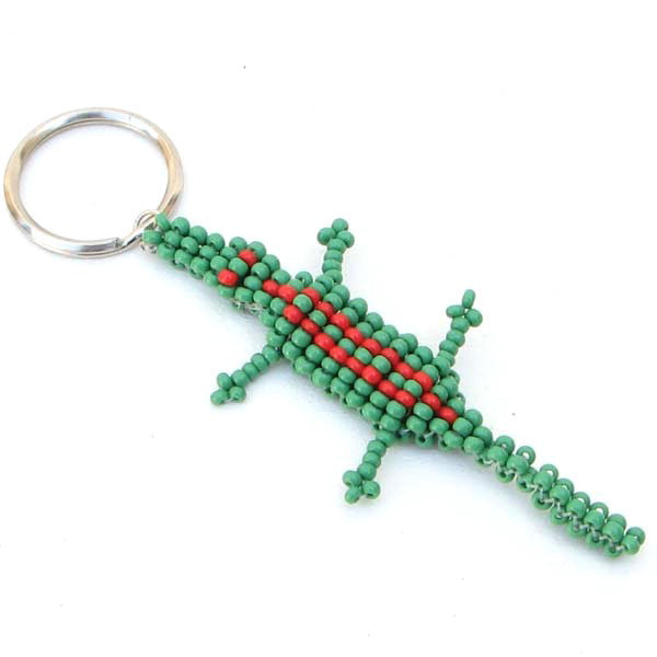 Crocodile Beadwork Green Red Seed Beaded Key Ring Charm Handmade