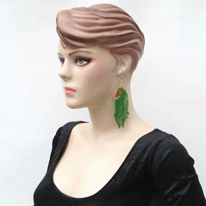 Green Brown Beaded Horse Beadwork Earrings