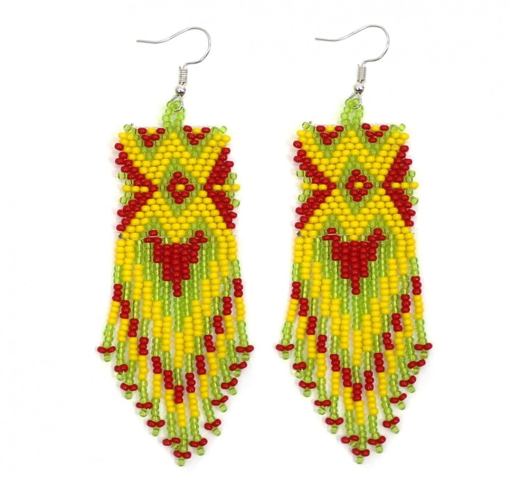 Green Red Handmade Beaded Earrings