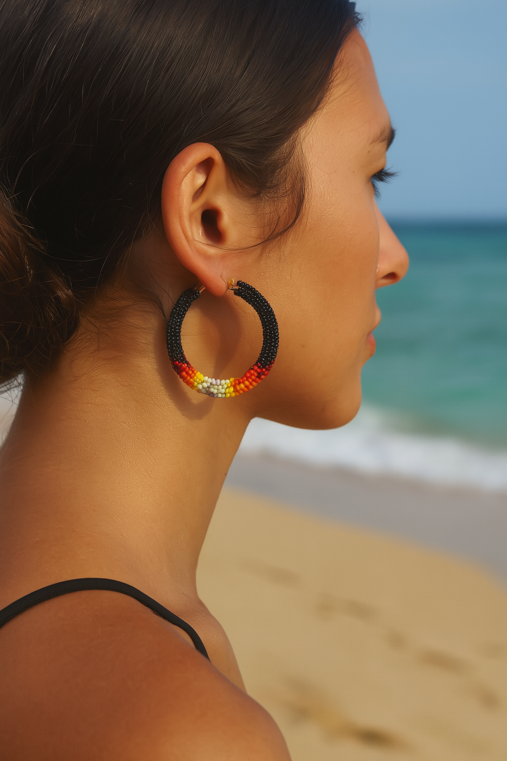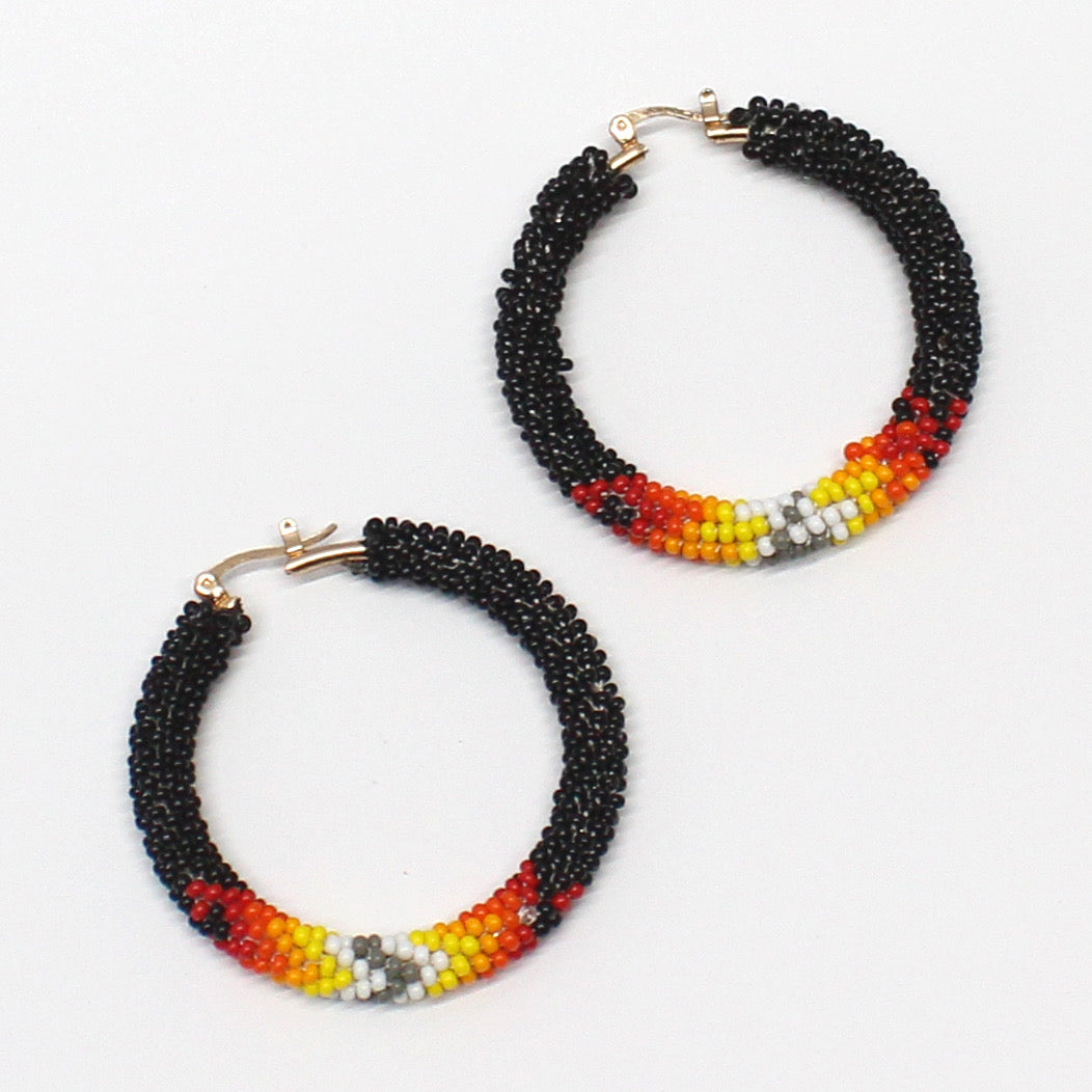 Handmade Black and Multicolor Native-Style Hoop Earrings 2”