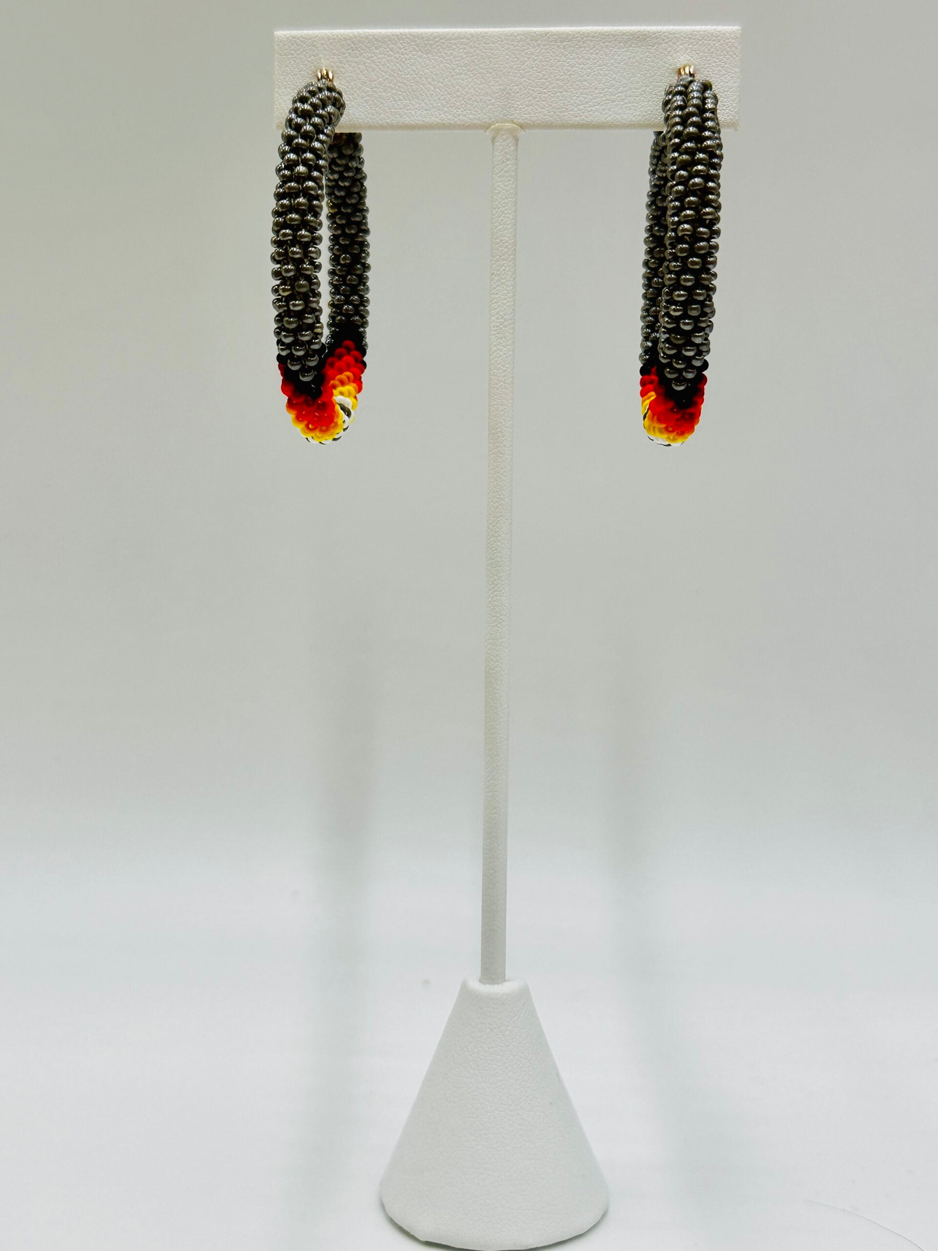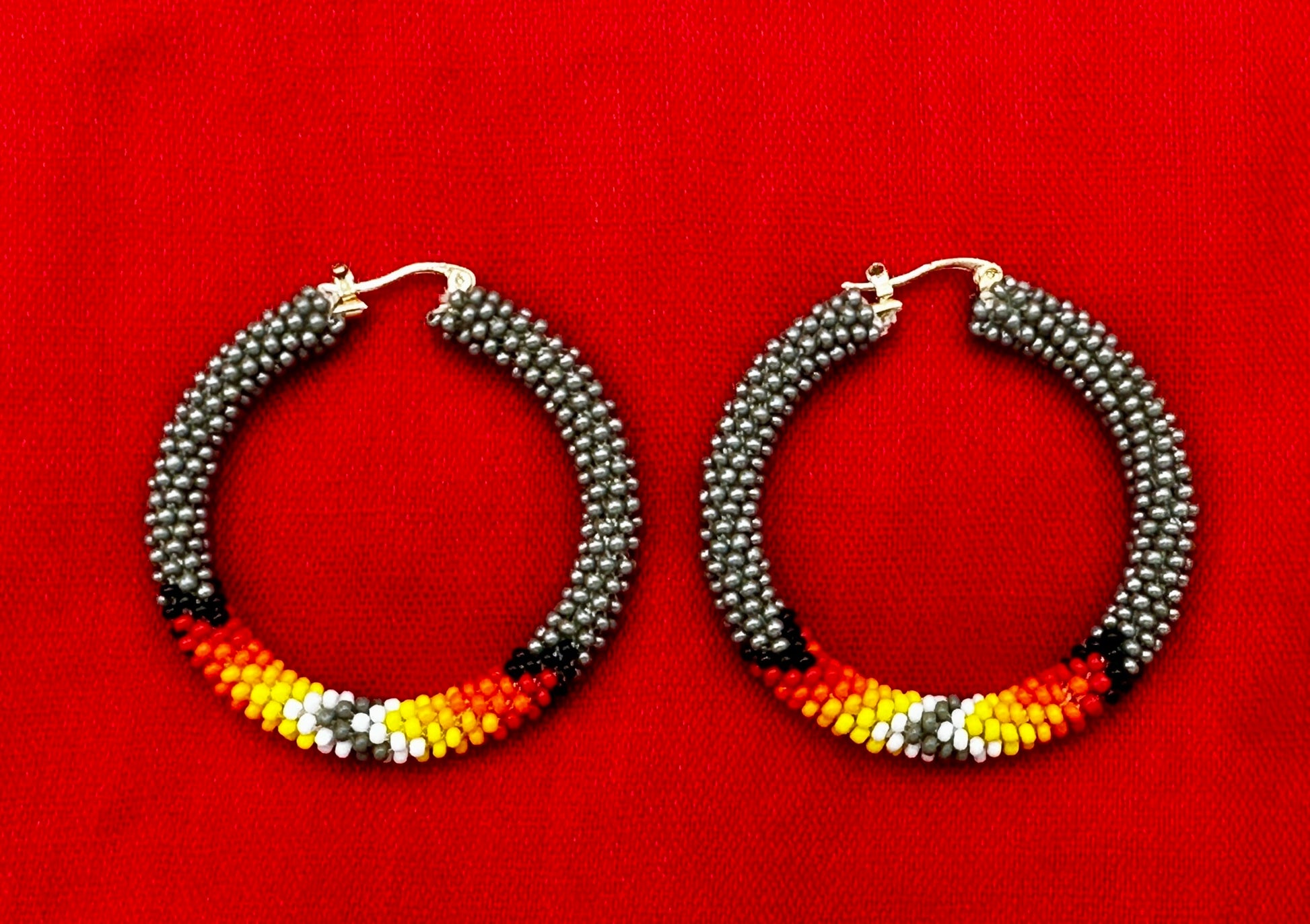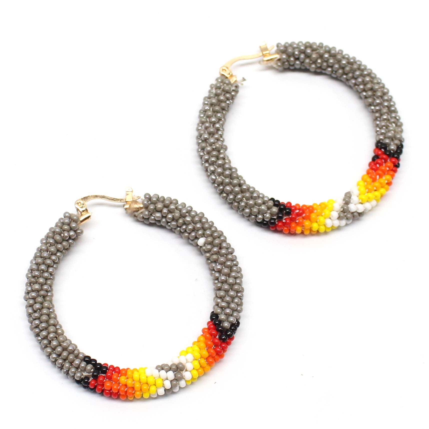 Handmade beaded Grey 2 inch Native style Hoop earrings