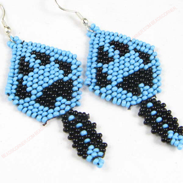 Handmade Beaded Bear Paw Turquoise Blue Seed Bead Earrings