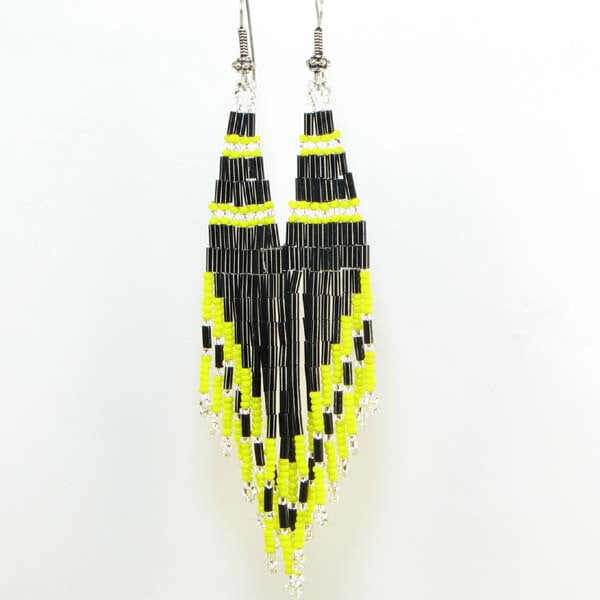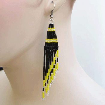 Handmade Beaded Black Bugle Seed Bead Earrings