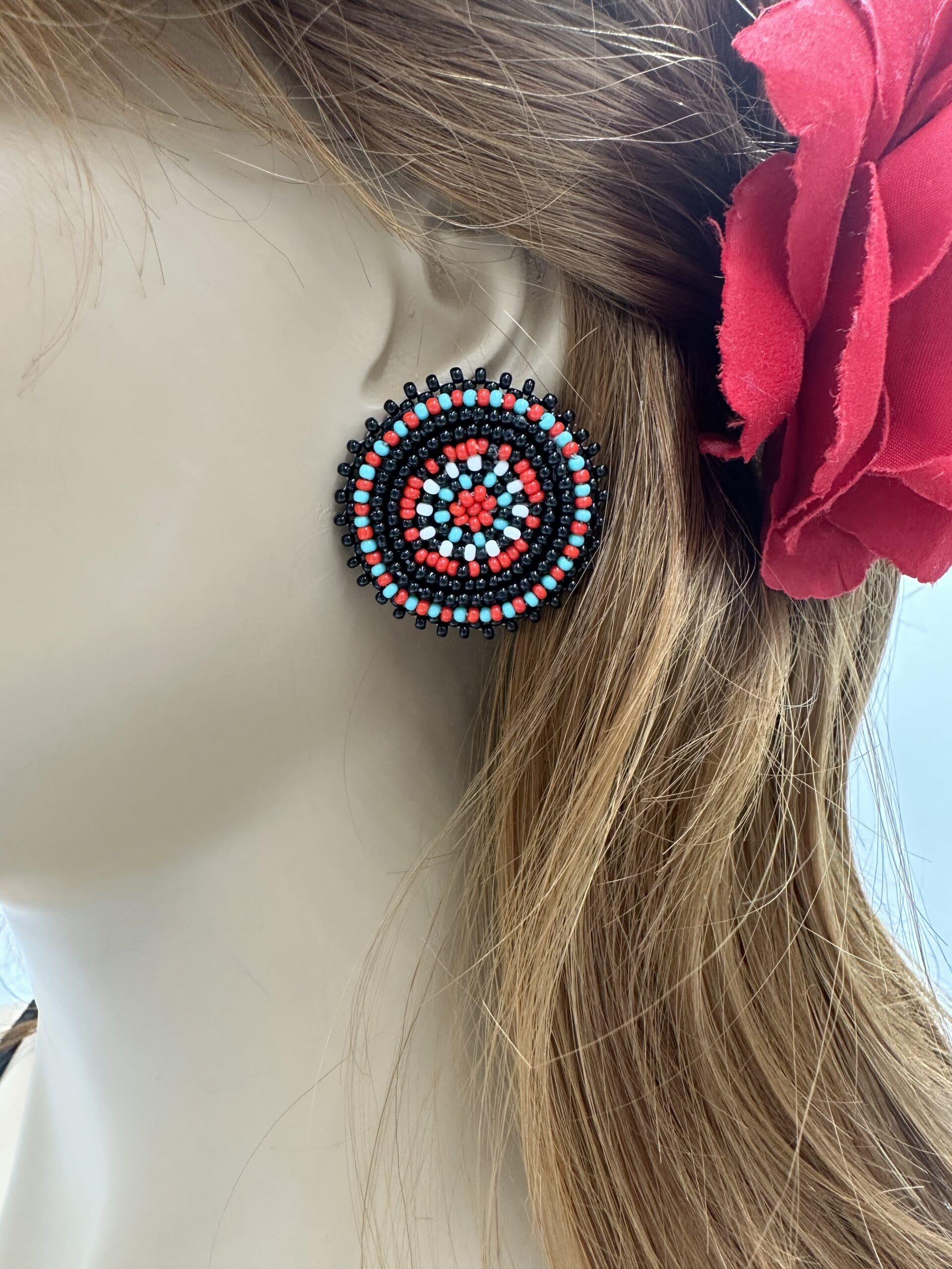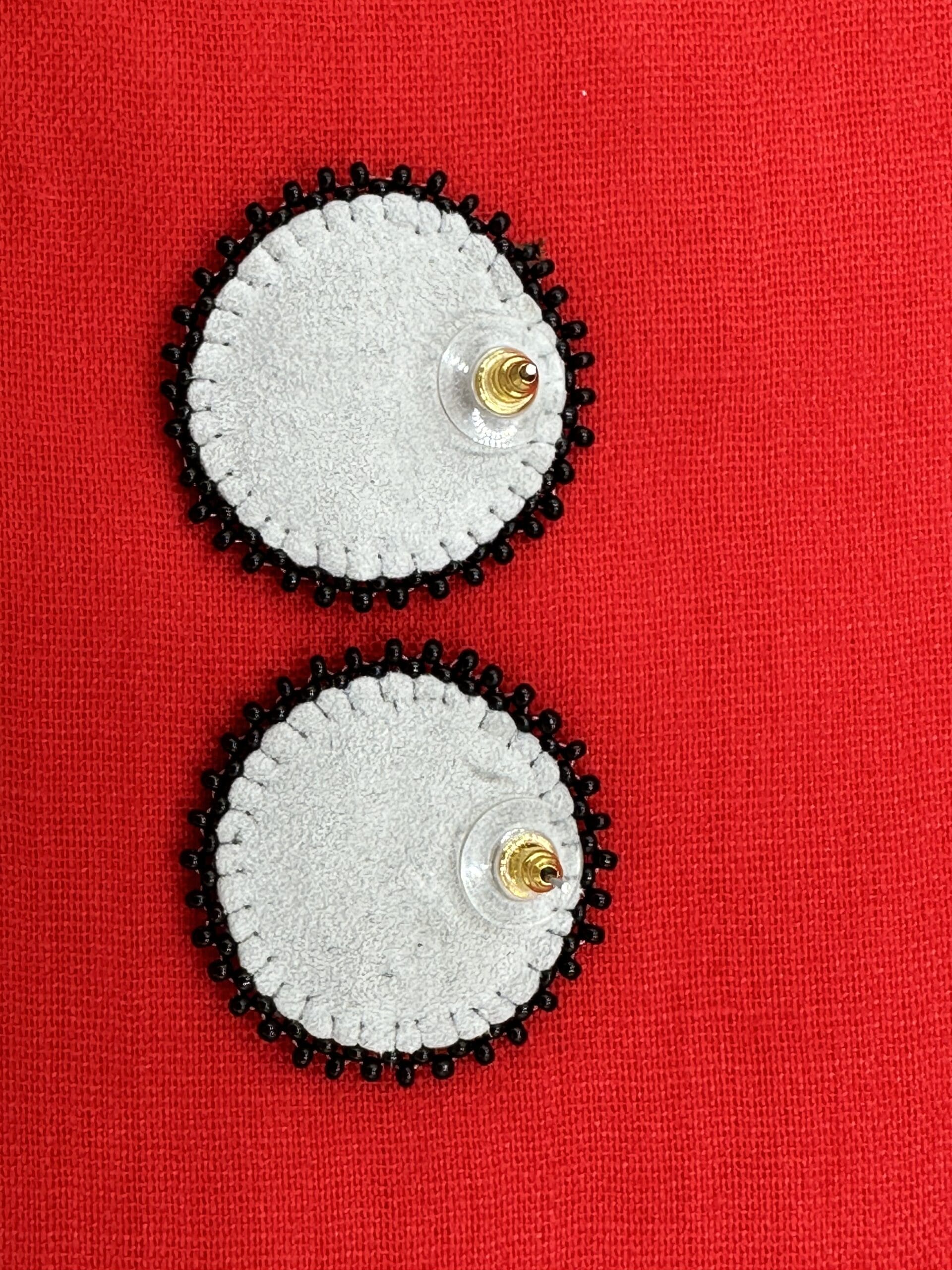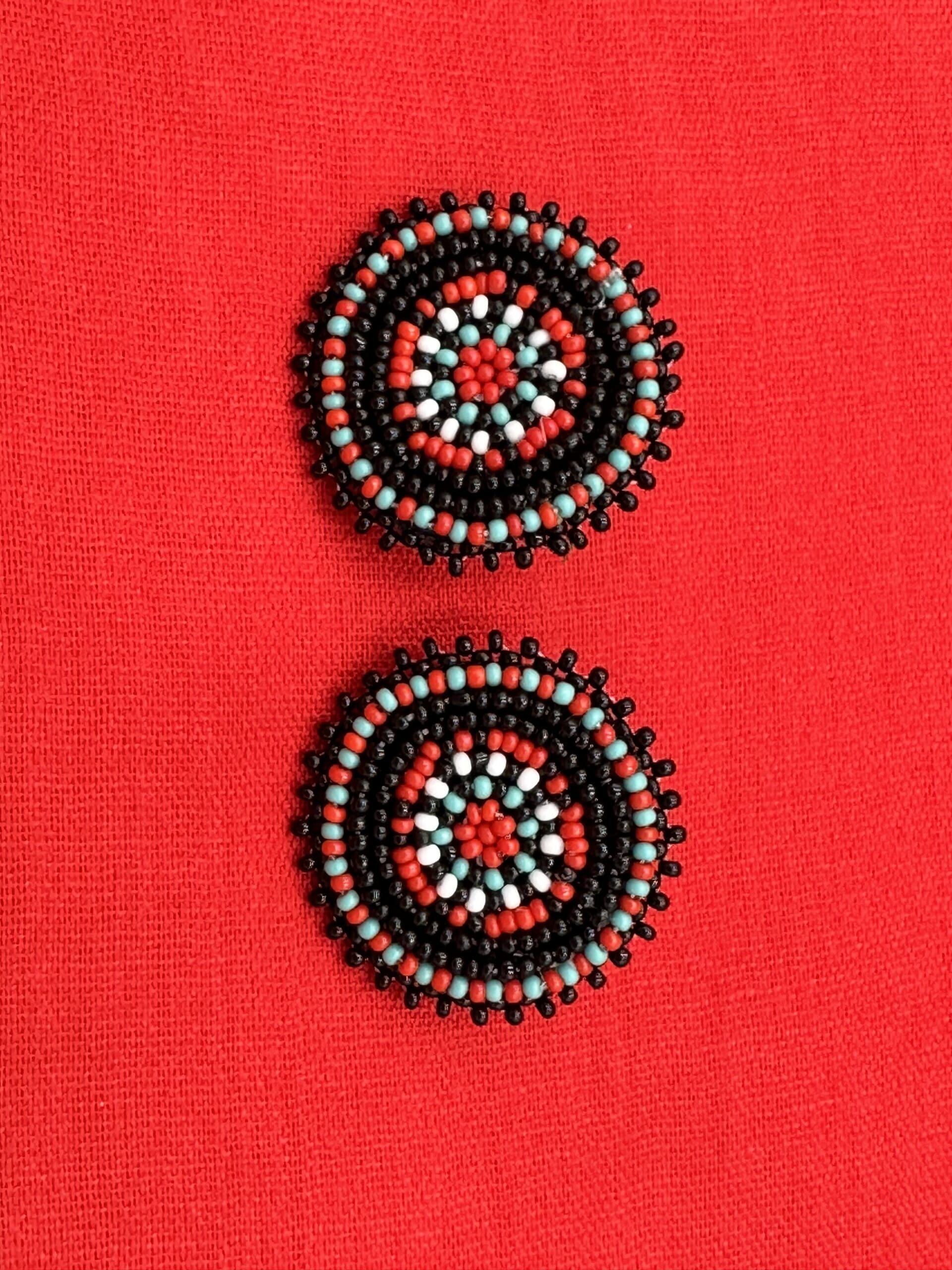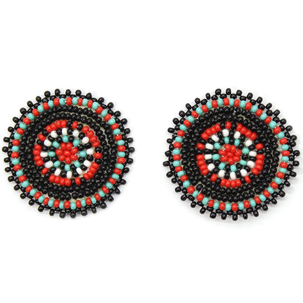 Handmade Beaded Black Red Color Round Post Earrings