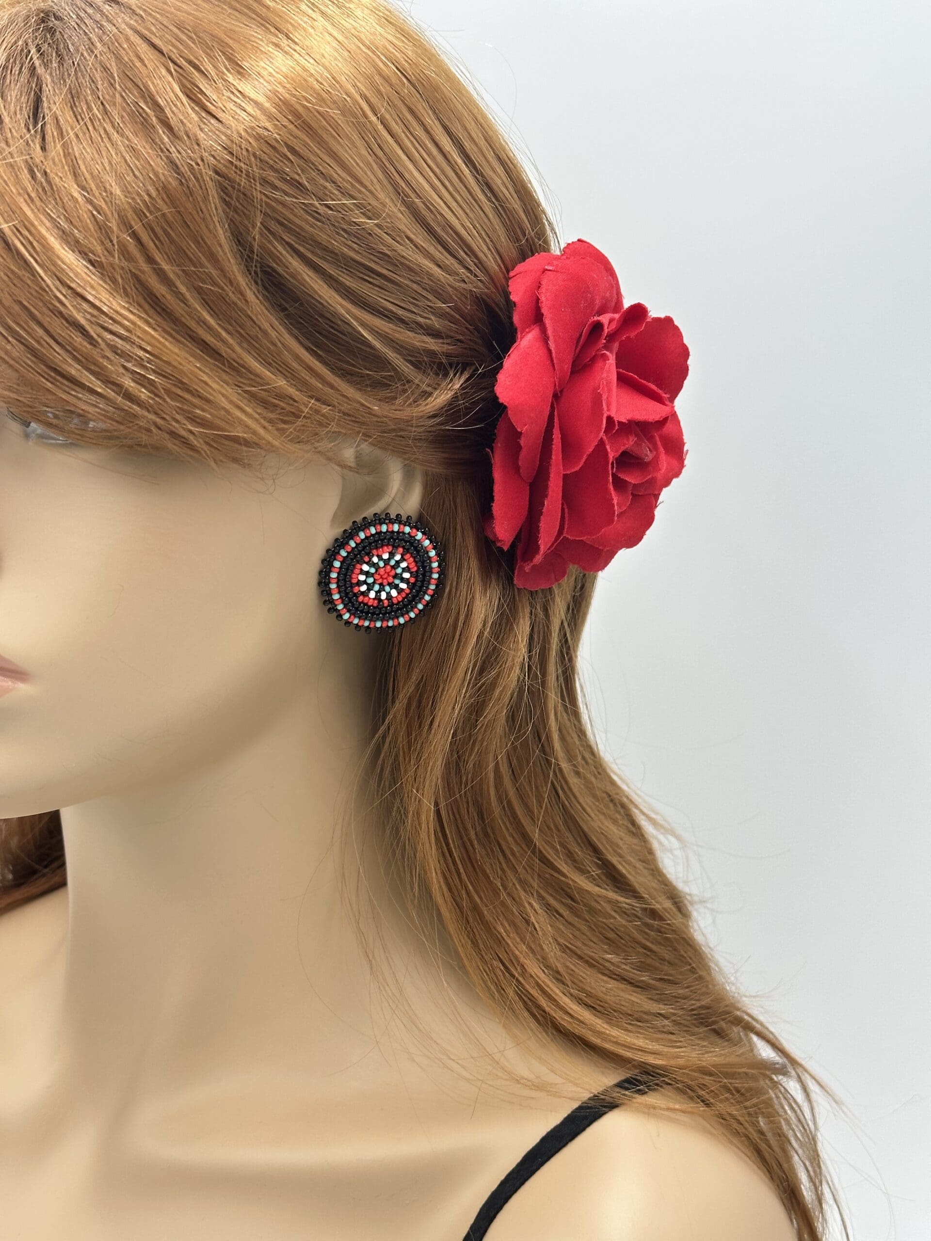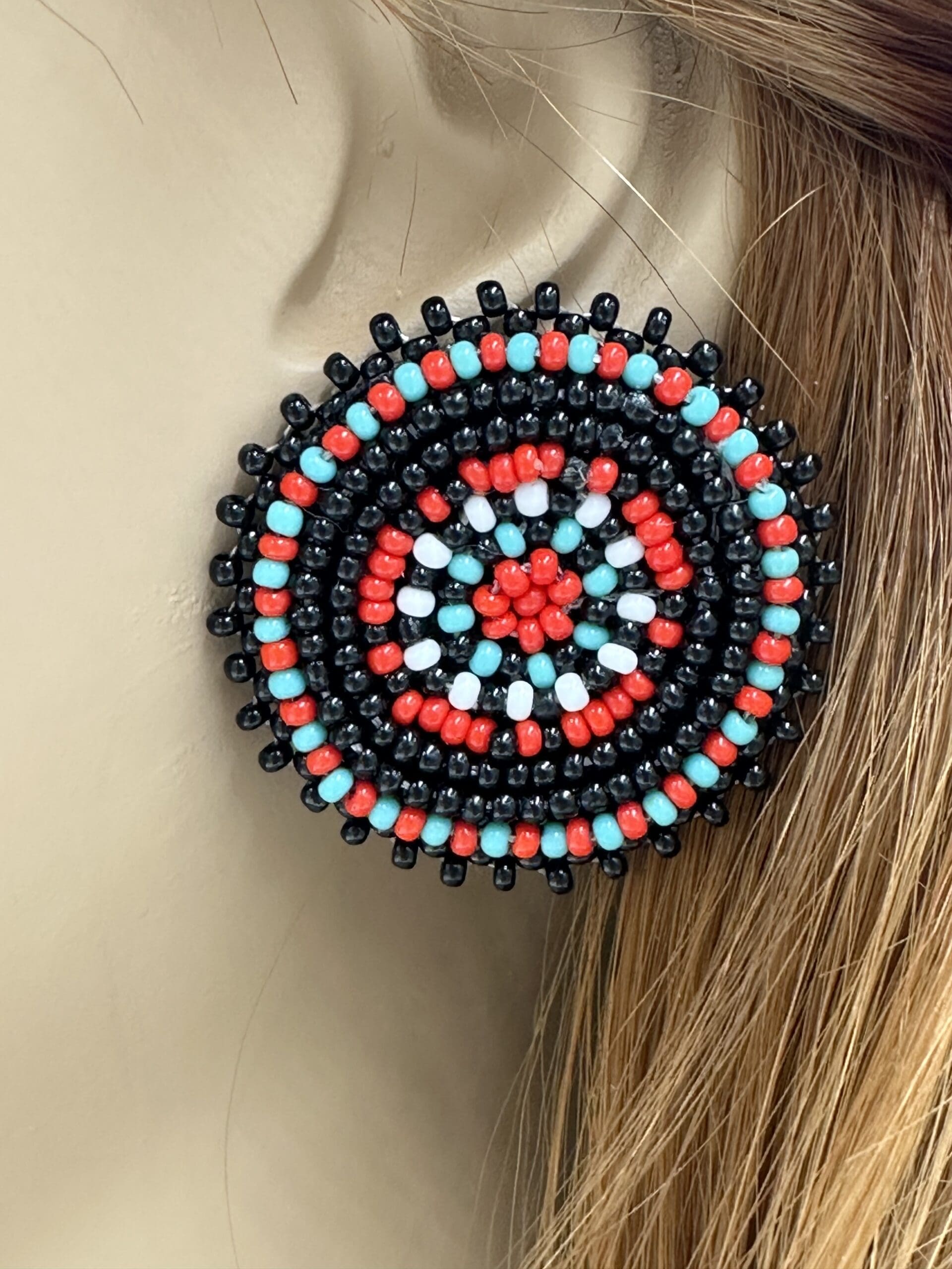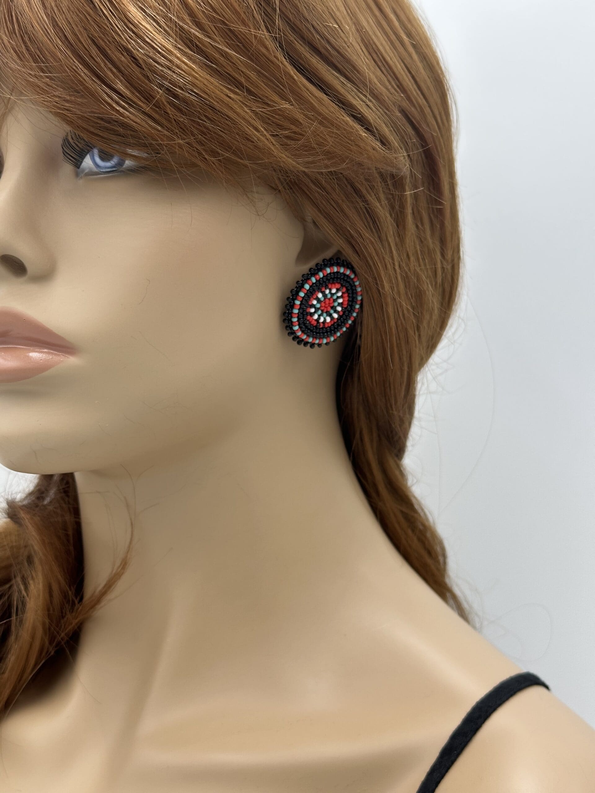 Handmade Beaded Black Red Color Round Post Earrings