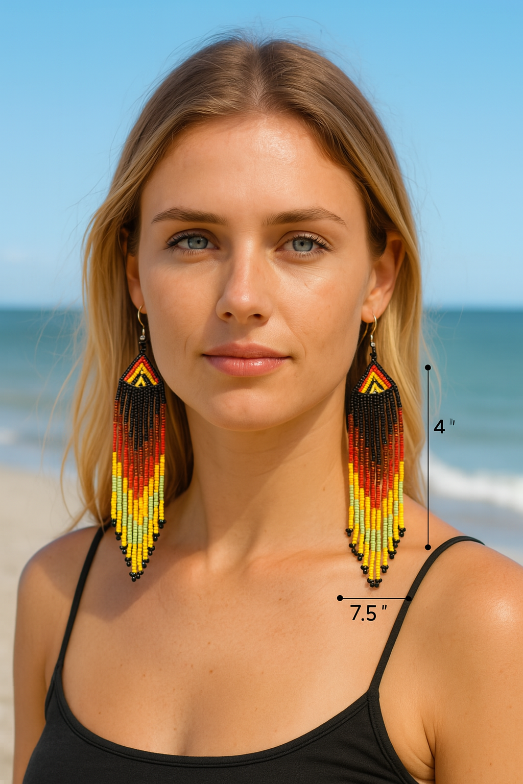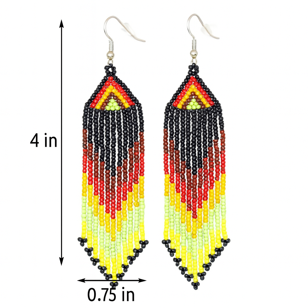 Vibrant Black and Red Beaded Native Style Dangle Earrings