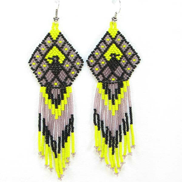 Handmade beaded yellow black Thunder bird earrings made from premium Czech glass beads size 11/0. The beautiful fringed design makes a nice addition to enhance your look, sure to get compliments.