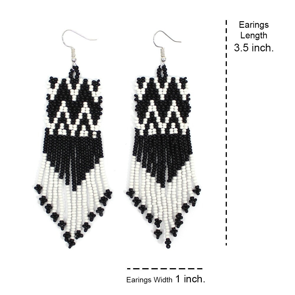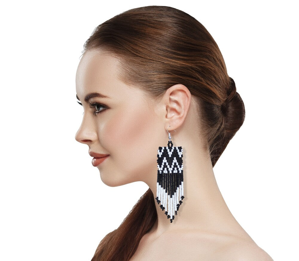 Handmade Beaded Black Seed Bead Native Style Earrings