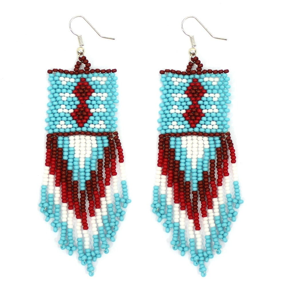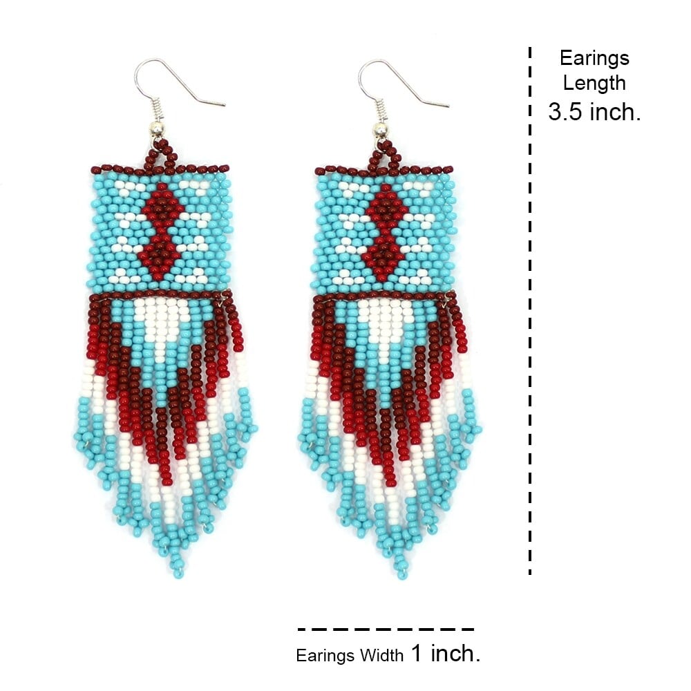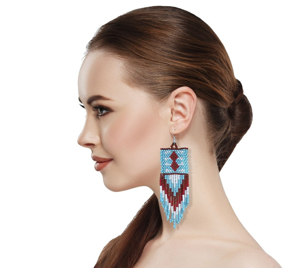 Handmade Beaded Blue Maroon Native Style Earrings