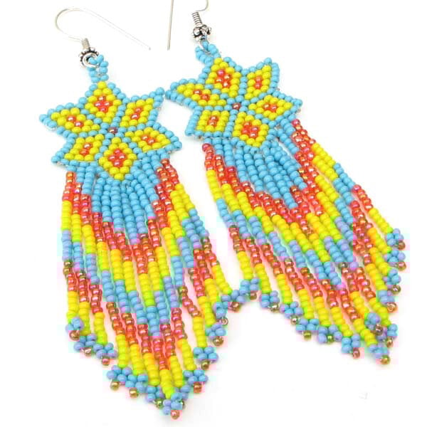 Handmade Beaded Blue Orange Seed Bead Big Earrings