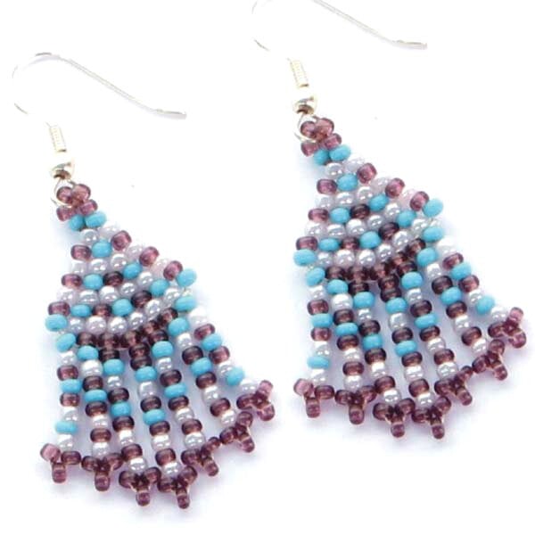 Handmade Beaded Blue Purple Small Earrings