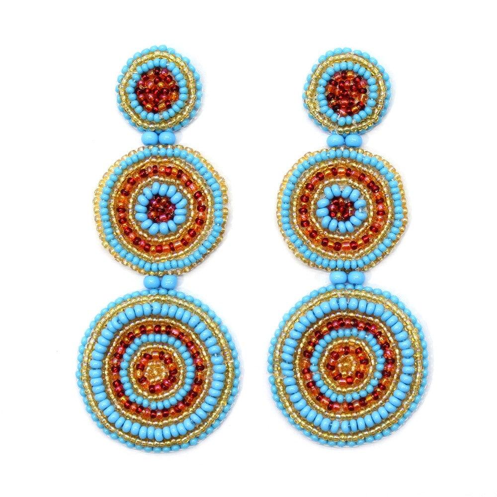 Handmade Beaded Blue Red Color Round Long Post Earrings