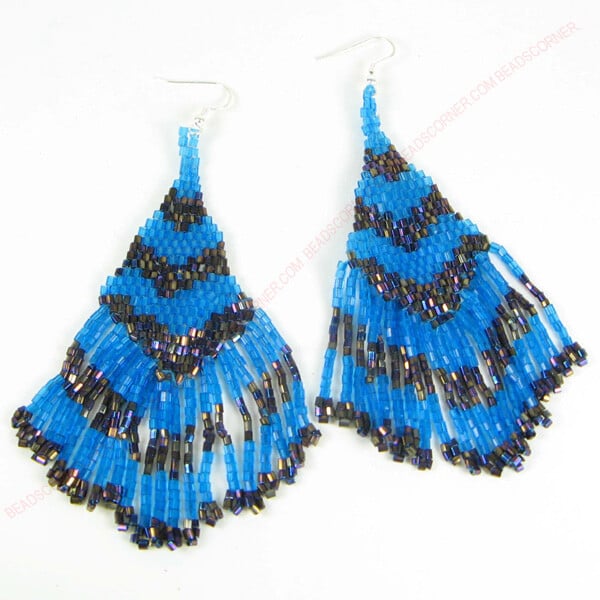 Handmade Beaded Blue Seed Bead Earrings Chandelier