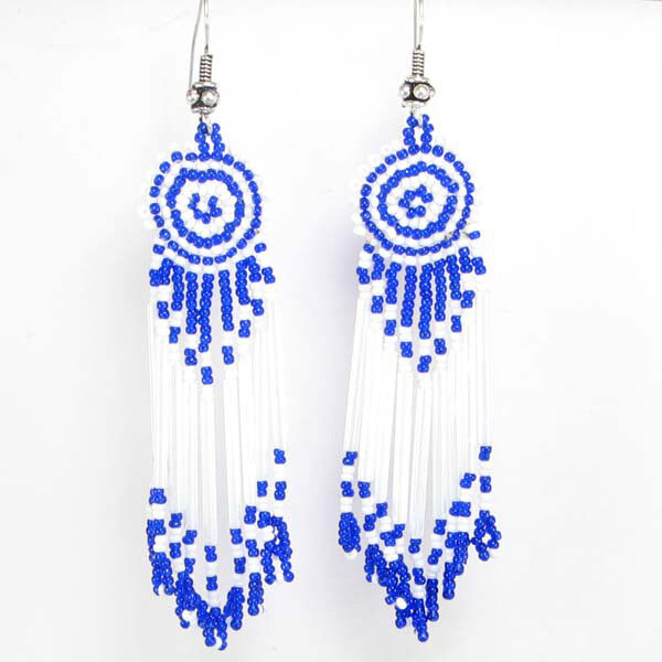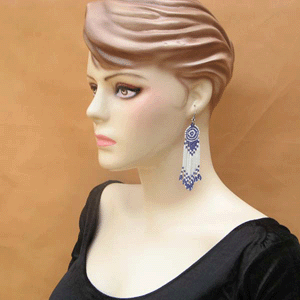 Handmade Beaded Blue White Bugle Seed Bead Earrings