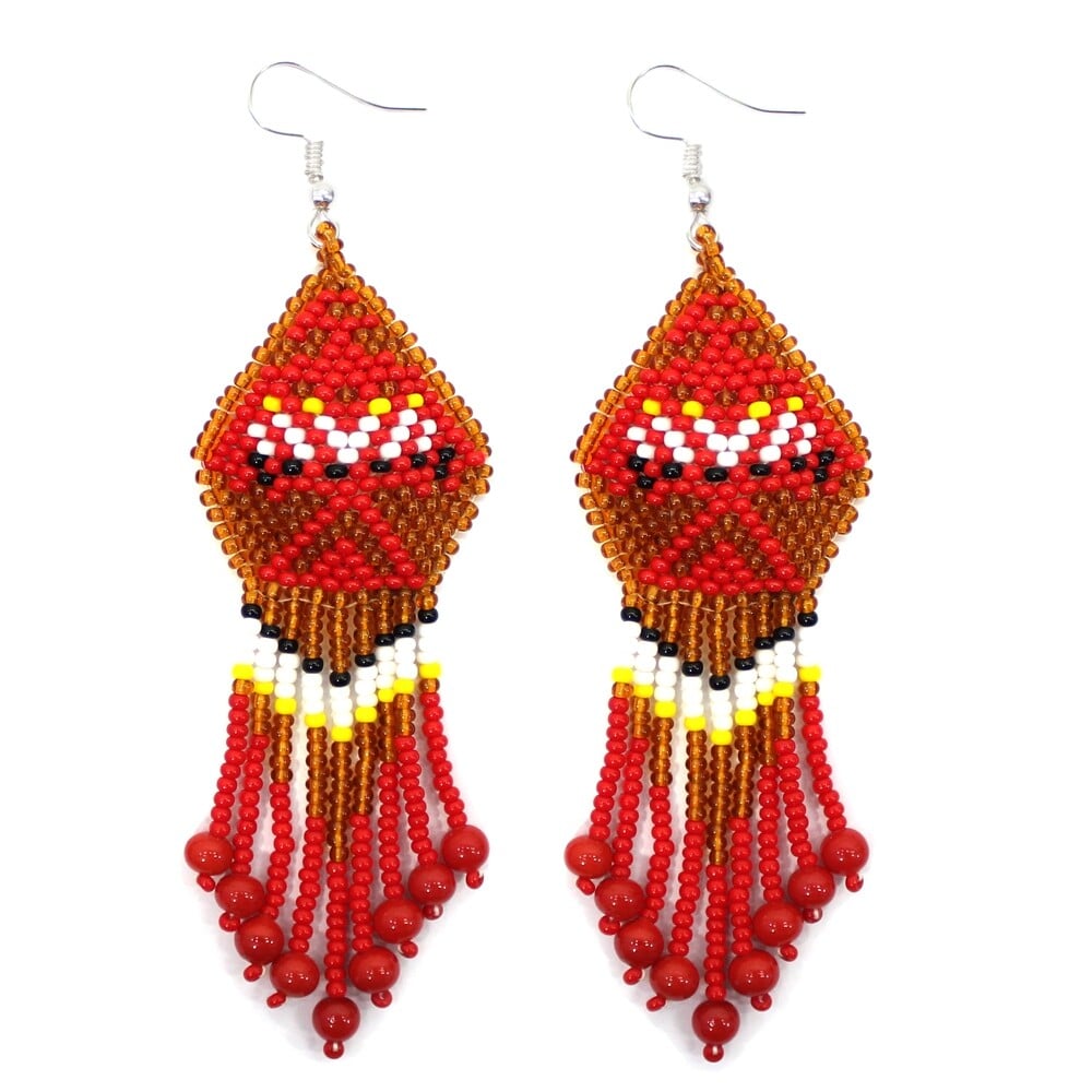 Rustic Brown Eagle Seed Bead Chandelier Earrings