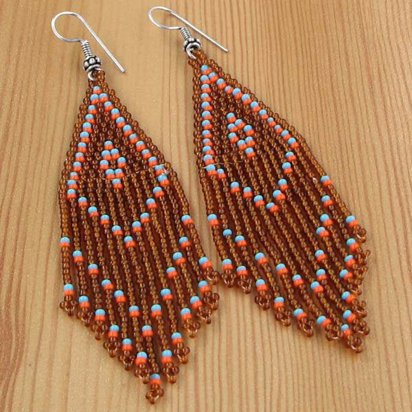Handmade Beaded Brown Seed Bead Big Earrings