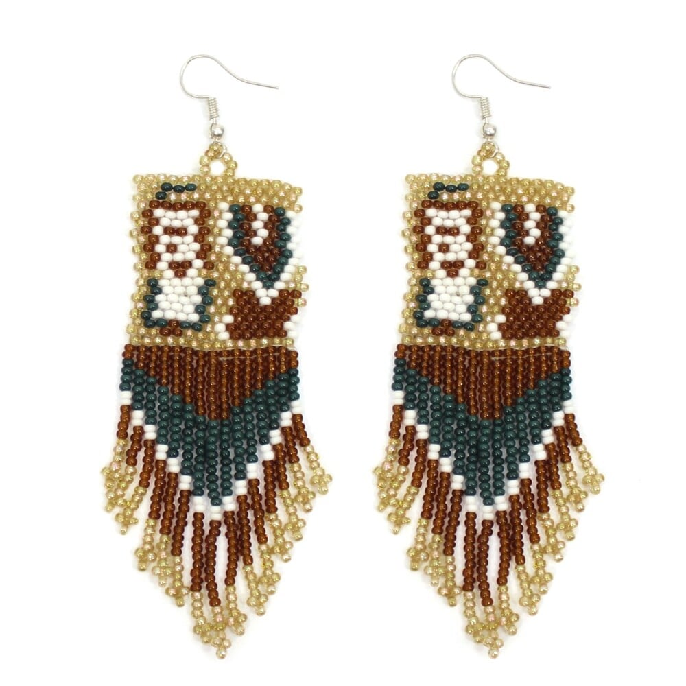 Handmade Beaded Brown Yei Dancer Seed Bead Earrings