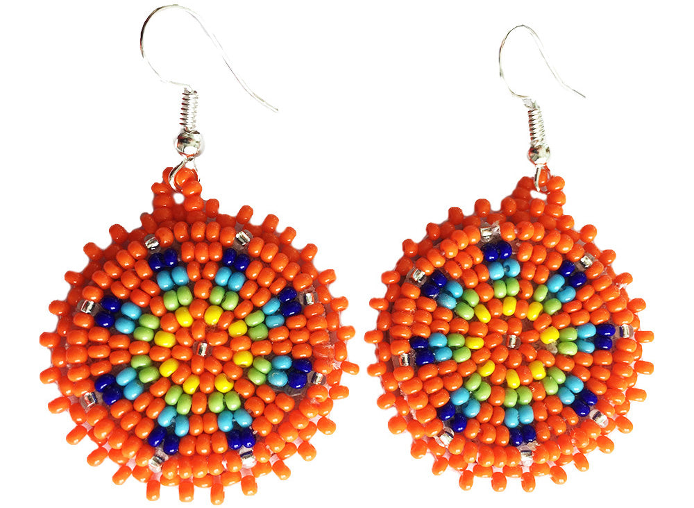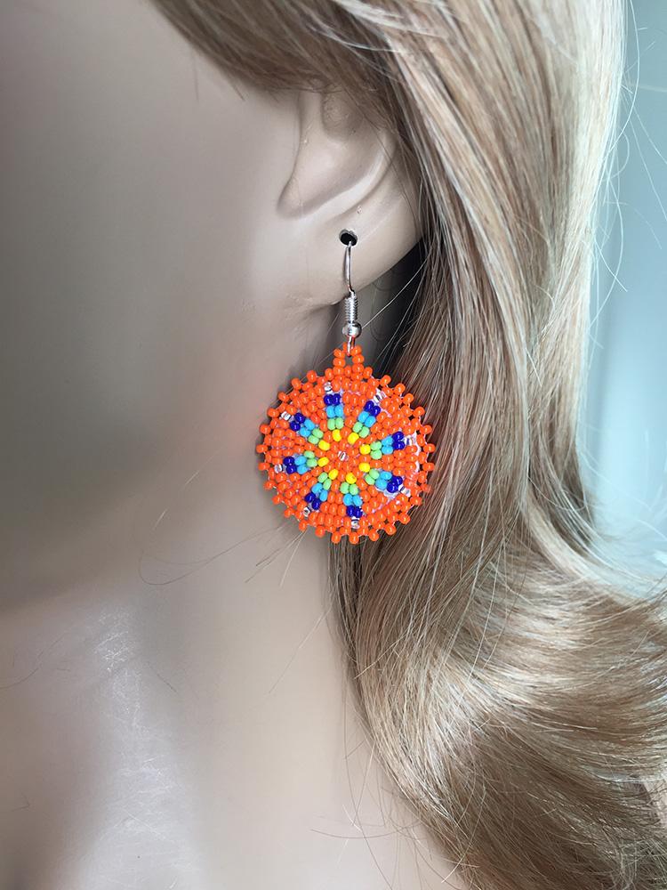 Handmade Beaded Cute Round Orange Earrings