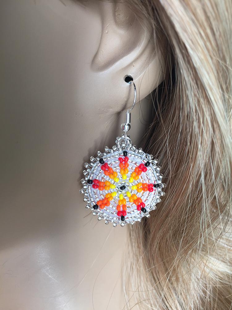 Handmade Beaded Cute Round Silver Earrings