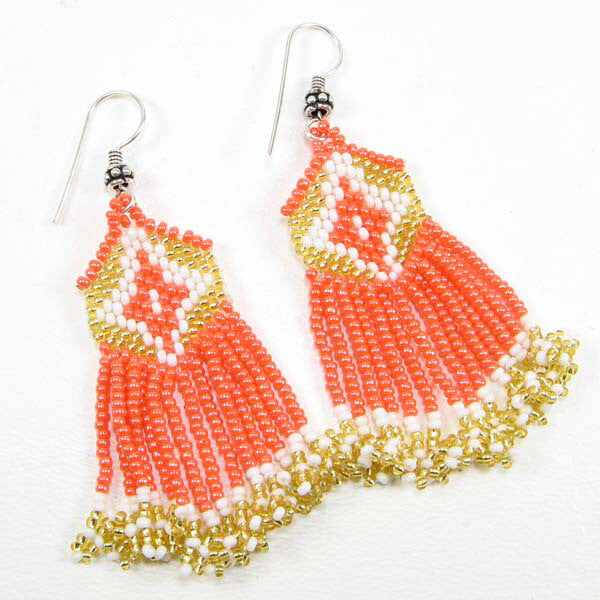 Handmade Beaded Dark Orange Seed Bead Earrings