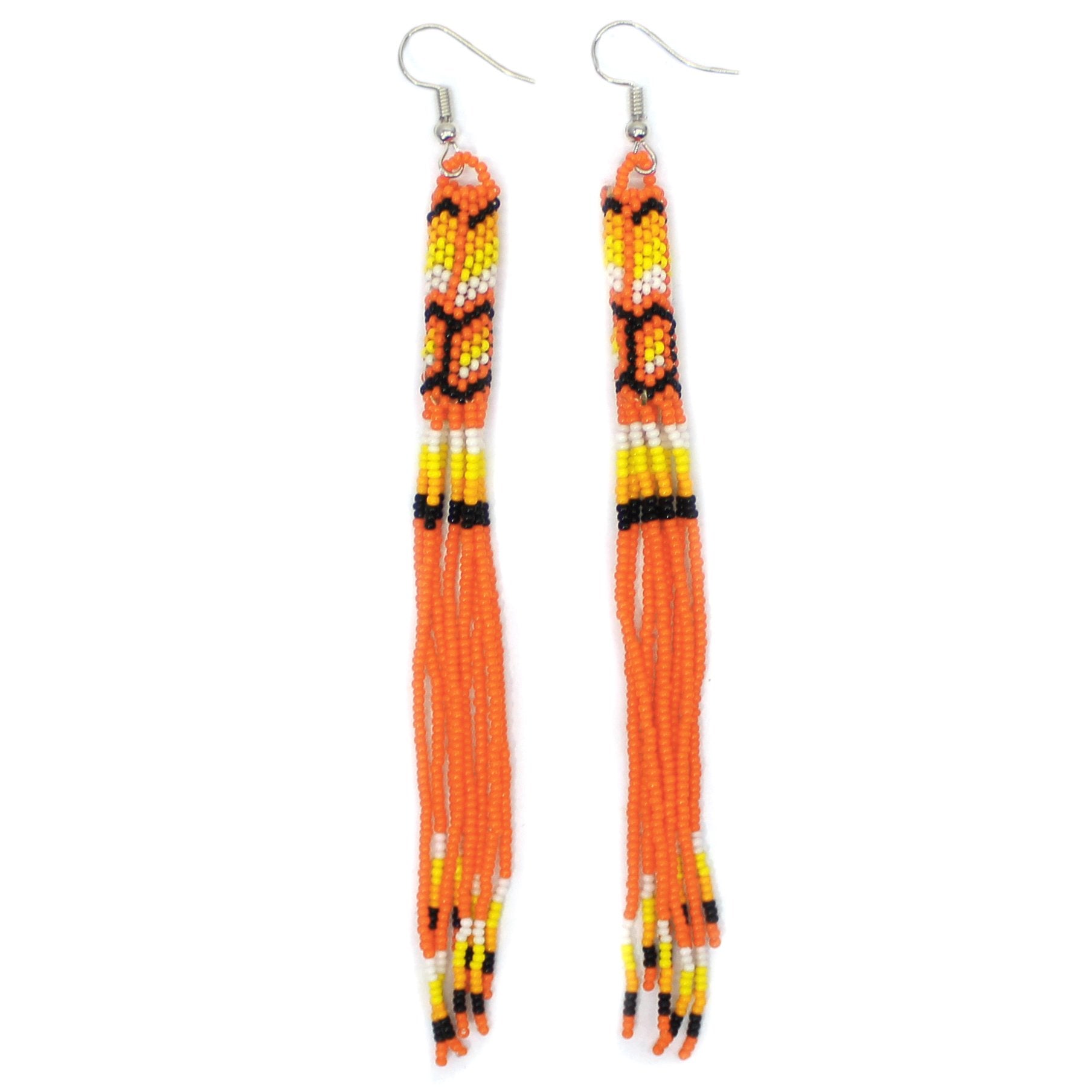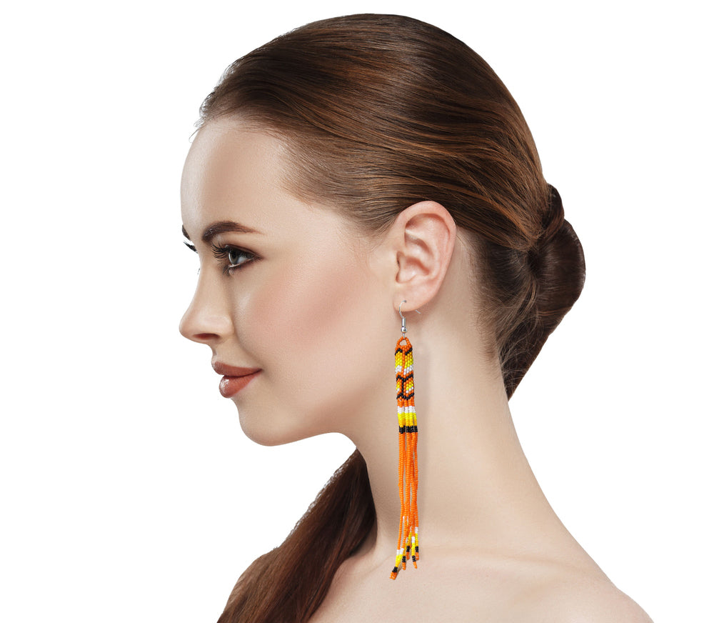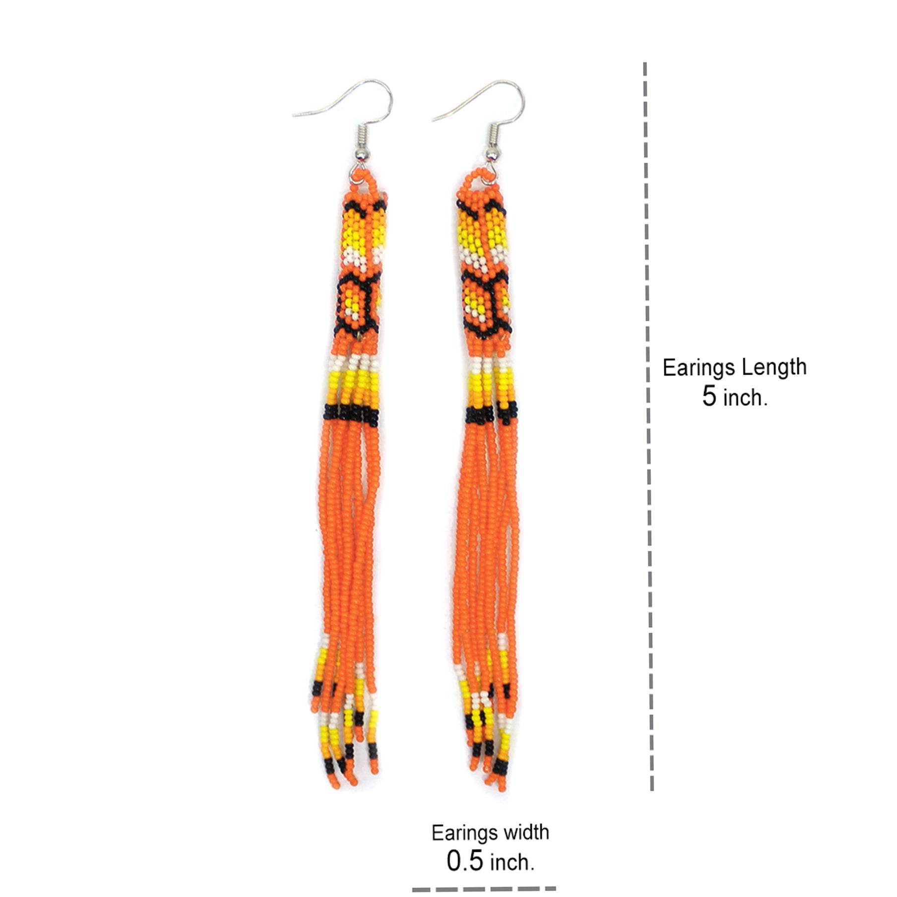 Handmade Beaded Earrings 5 Inch Long - Orange