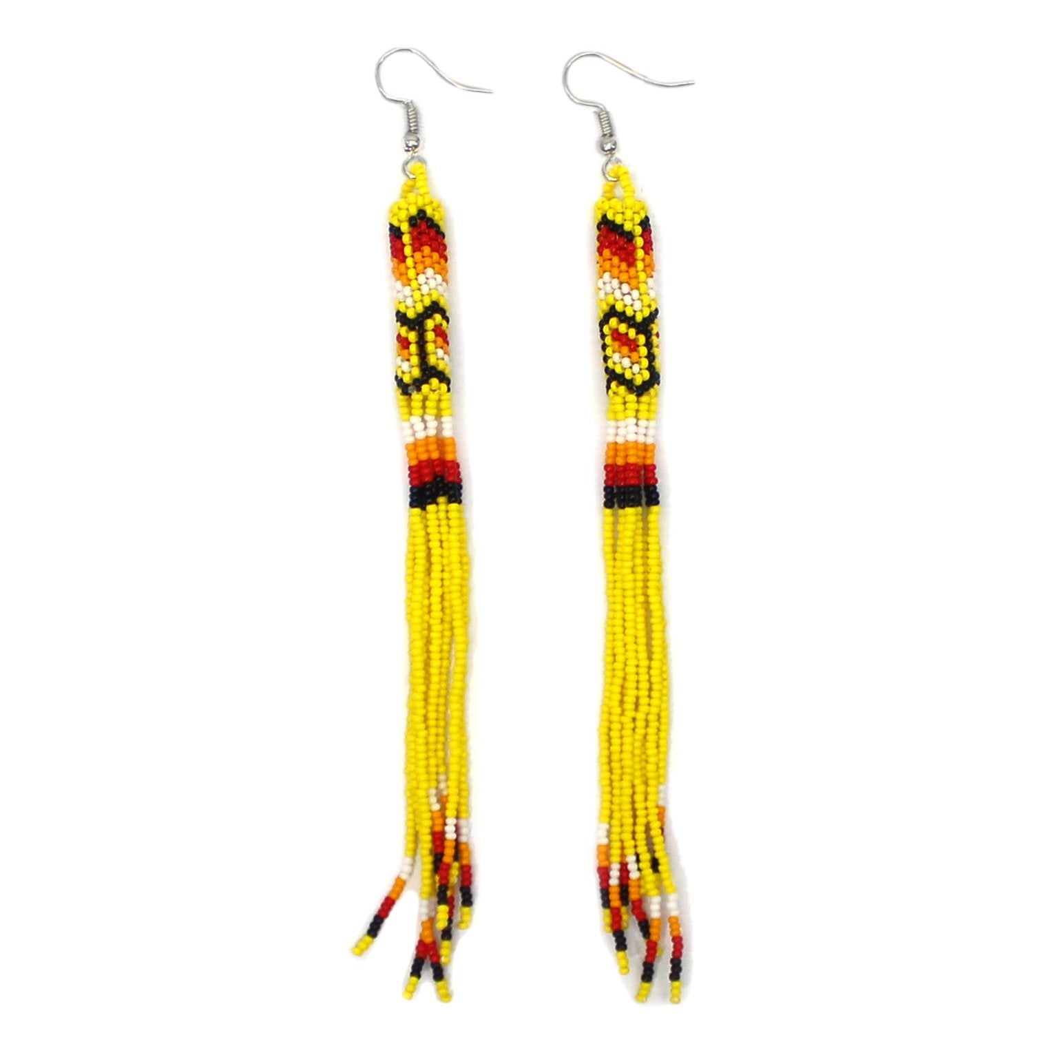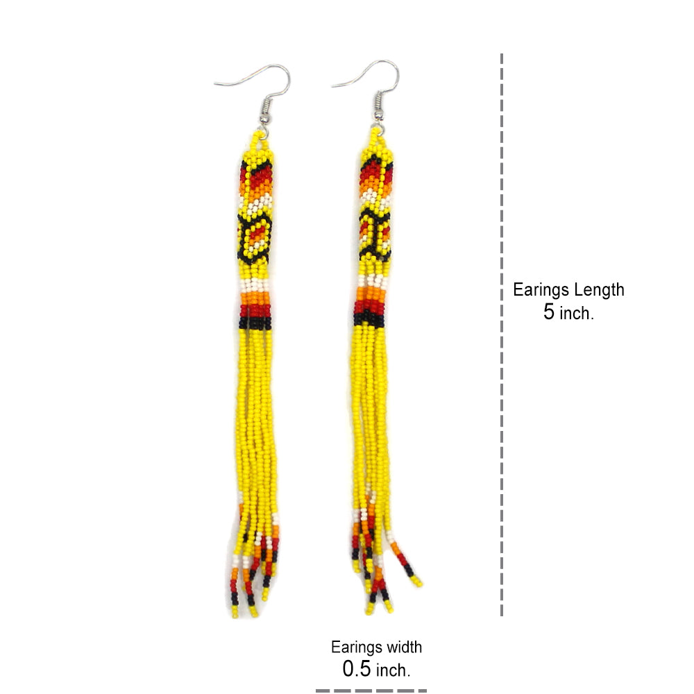 Handmade Beaded Earrings 5 Inch Long - Yellow