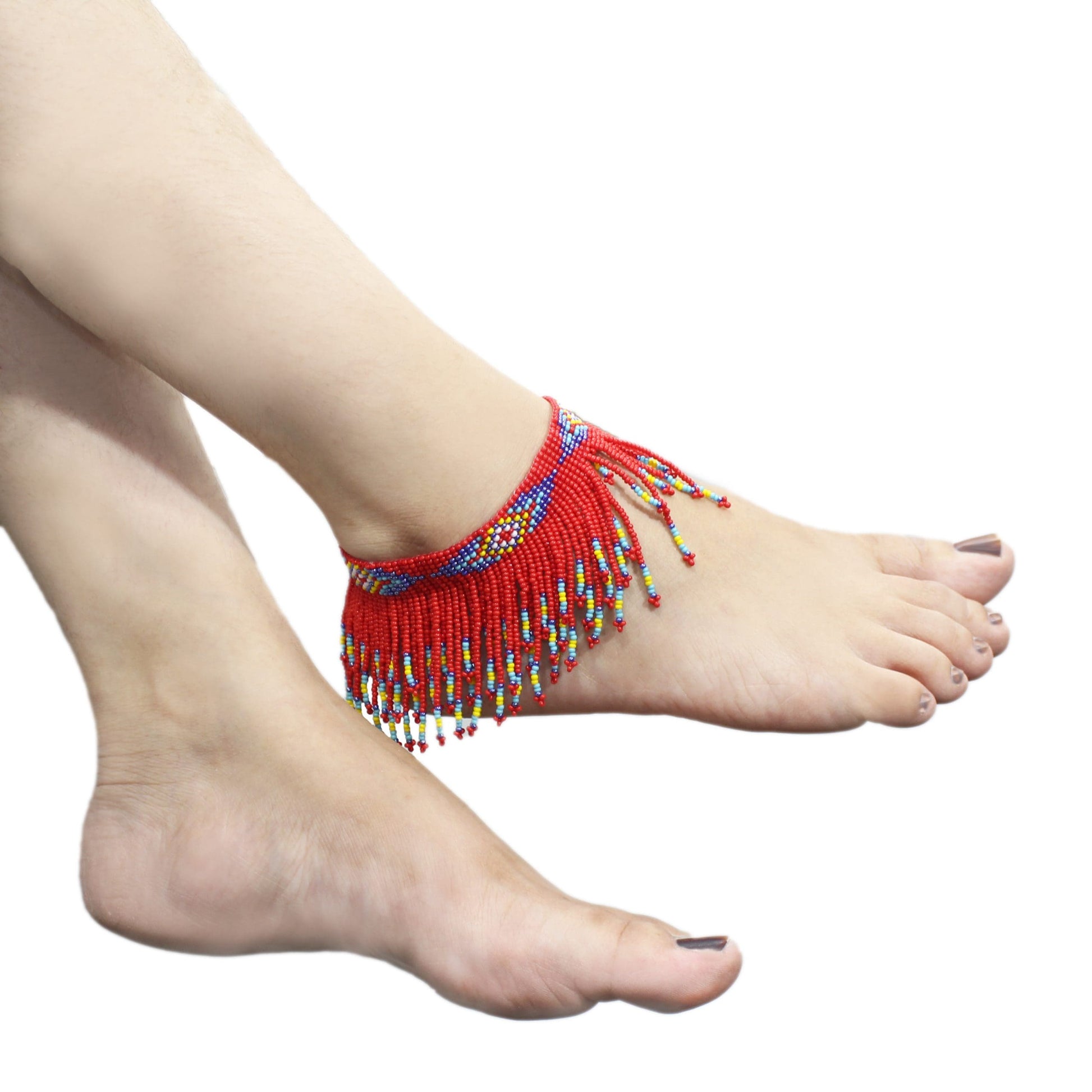 Handmade Beaded Foot Anklet Bohemian for Women Girl Native Southwest Colors Ankle Bracelet (Red)