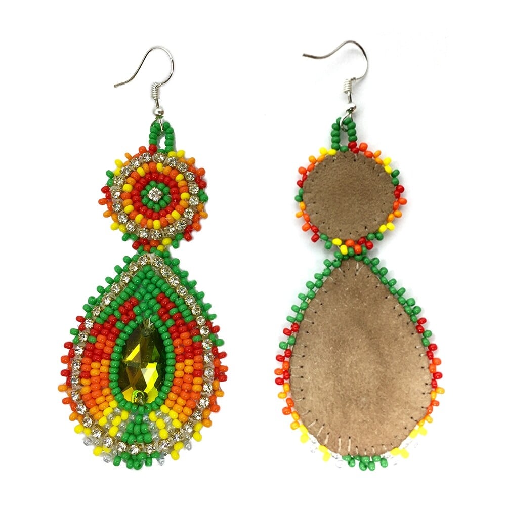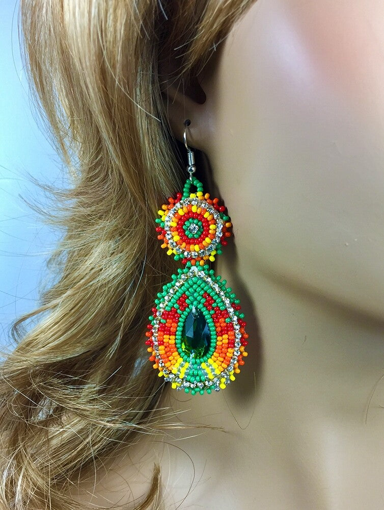 Handmade Beaded Green Orange Dangle Fashion Hook Earrings