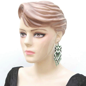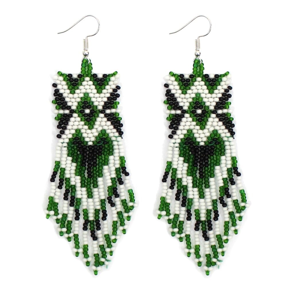 Handmade Beaded Green Seed Bead Big Native Style Inspired Earrings
