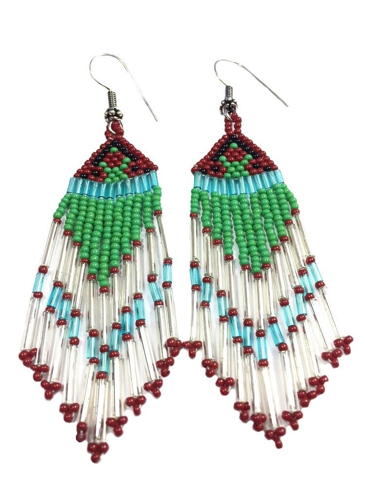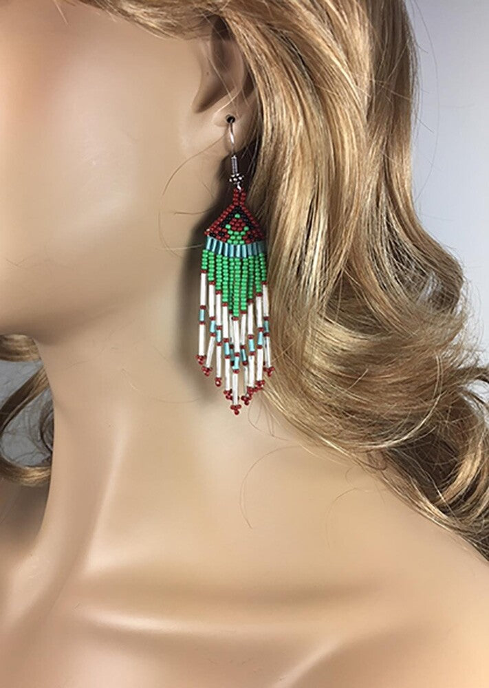Beads: Czech Glass Seed Beads, Weight: 10.5 grams, Length: 3.8 inch including Ear Wire, Max Width: 0.9 inch