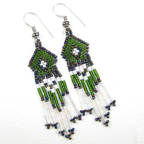 Handmade Beaded Green Seed Bead Earrings