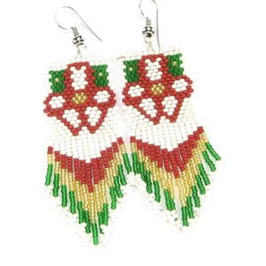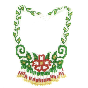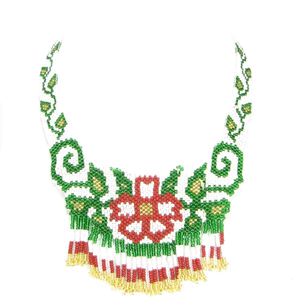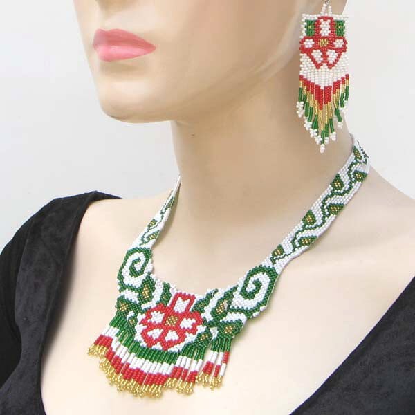 Handmade Beaded Green Seed Bead Long Necklace Earrings Set