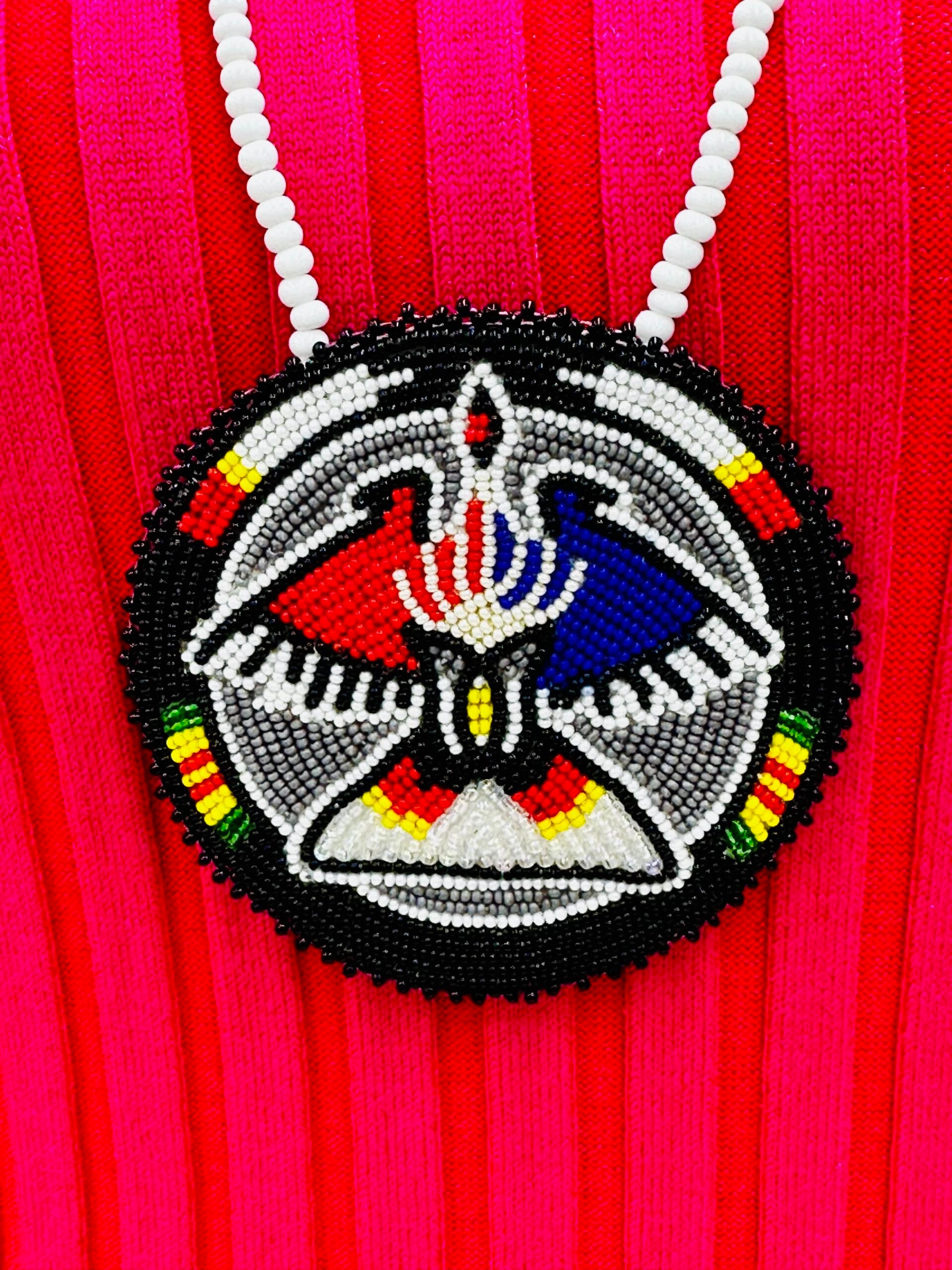 The eagle is a powerful symbol in Native American culture, often featured in handmade beaded jewelry. It represents strength, courage, and spiritual connection. The eagle is refered as a messenger between the physical and spiritual worlds, embodying freedom and vision. By incorporating the eagle into their jewelry, Native American artisans honor its sacred significance and convey deep cultural values through their intricate beadwork.