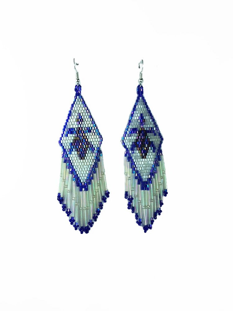 Handmade Beaded Iris Blue White Delica Seed Bead Turtle Big Earrings