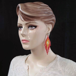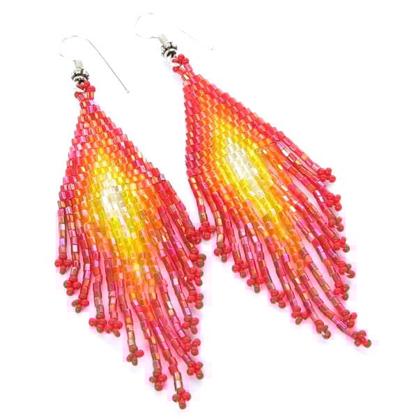 Handmade Beaded Iris Red Seed Bead Big Earrings