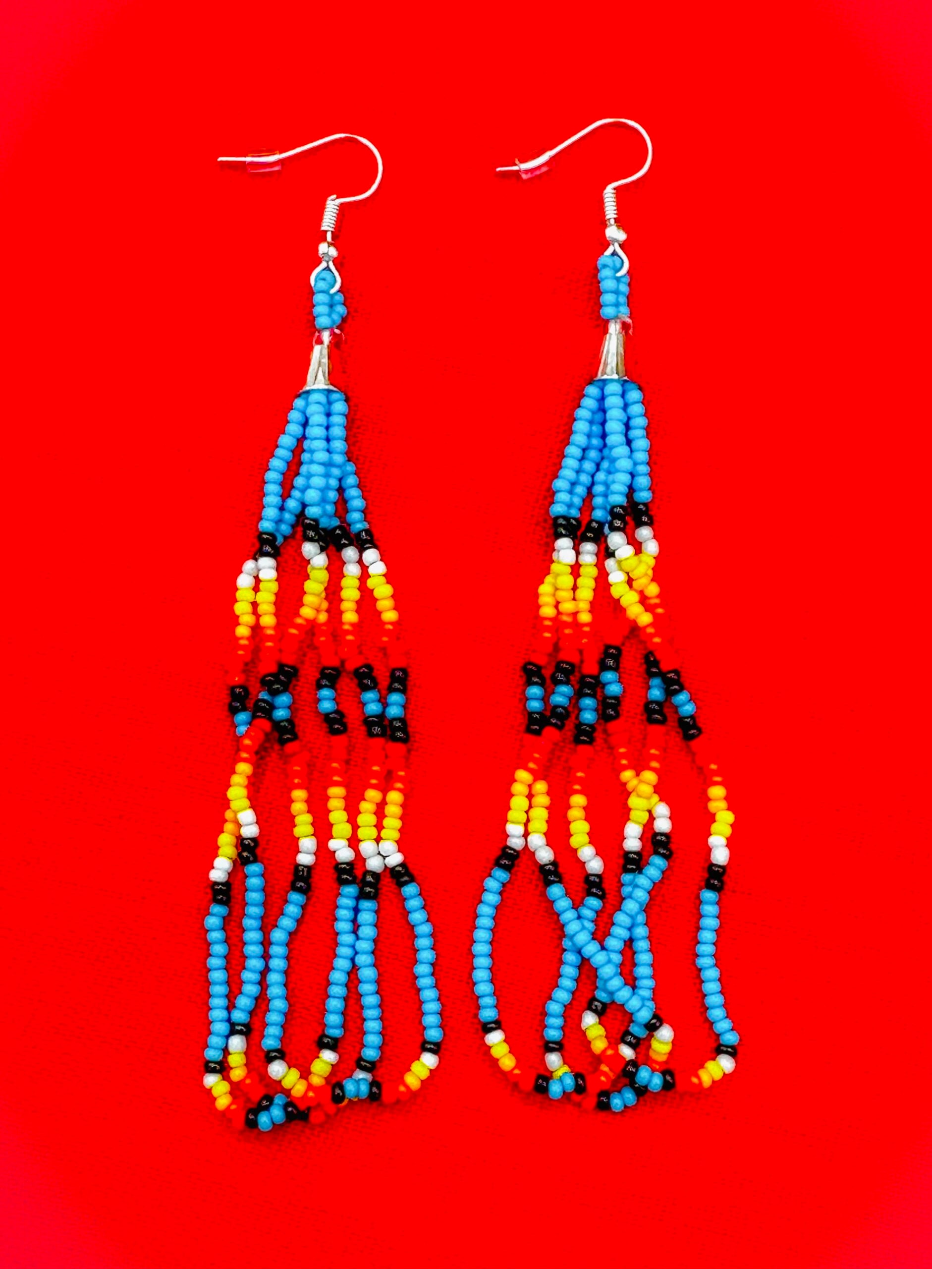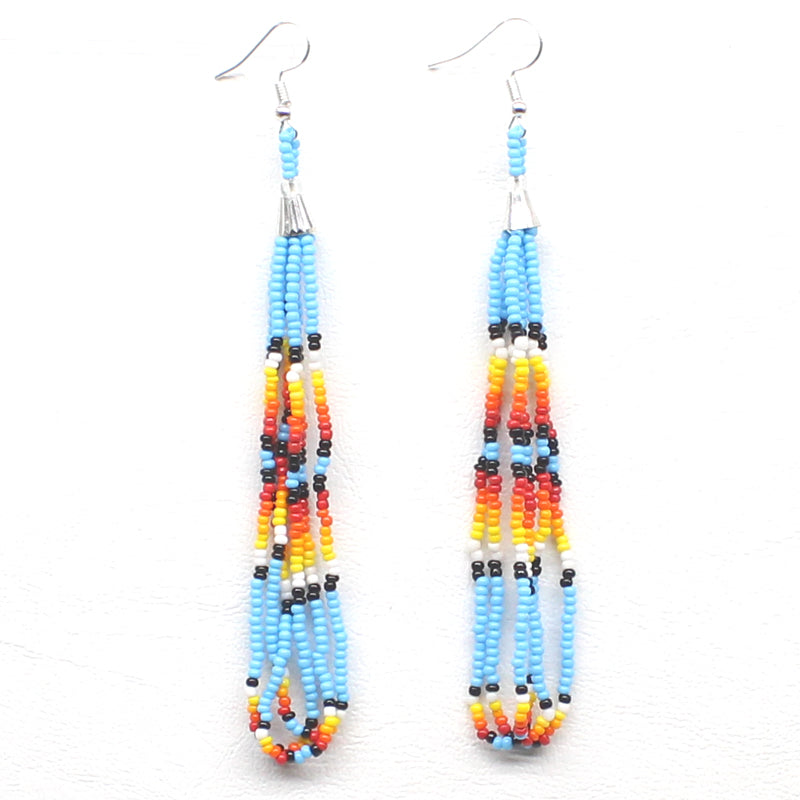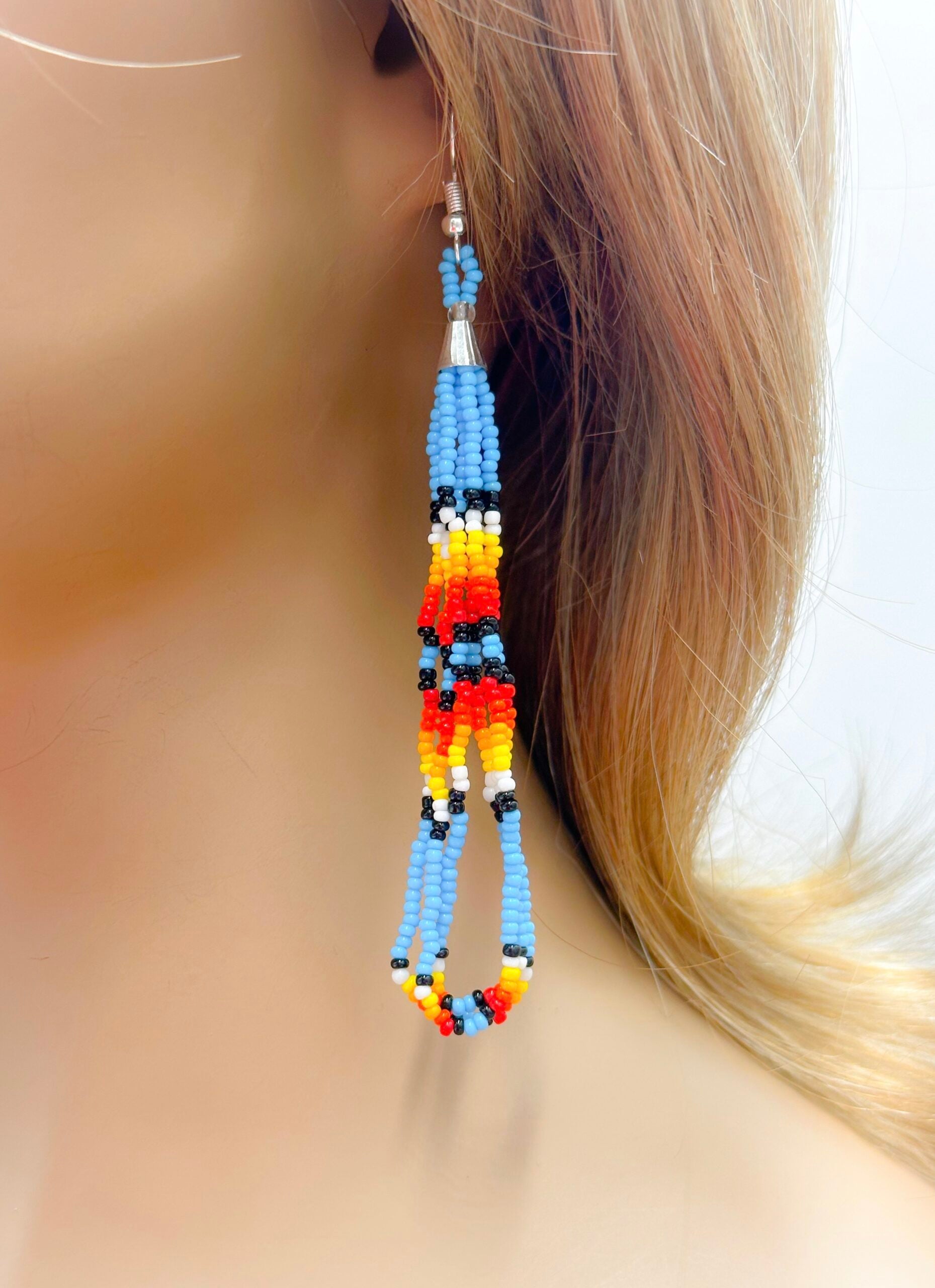 Handmade beaded Cyan Blue Fire colors loop earrings.