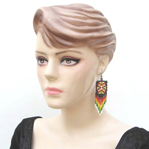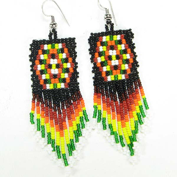 Handmade Beaded Multicolor Seed Bead Big Earrings