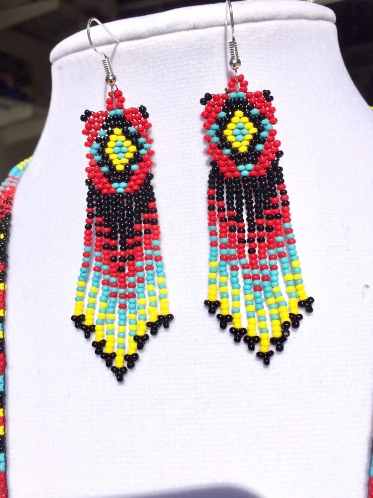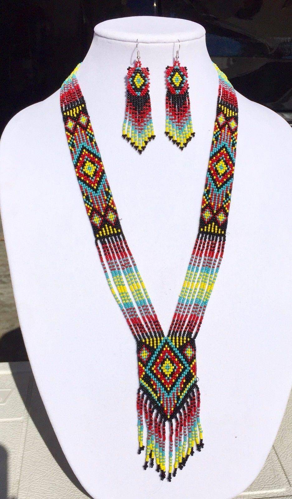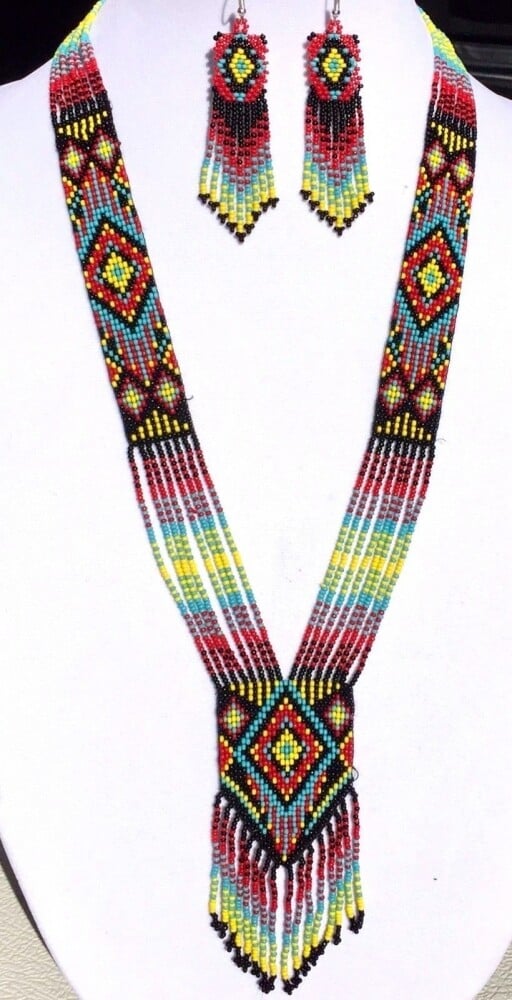 Handmade Ethnic Beaded Multicolored Native Inspired Necklace Earrings Set