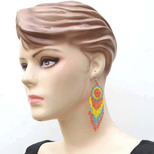 Handmade Beaded Orange Medallion Seed Bead Big Earrings