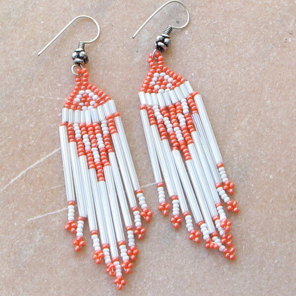 Handmade Beaded Orange White Bugle Seed Bead Earrings